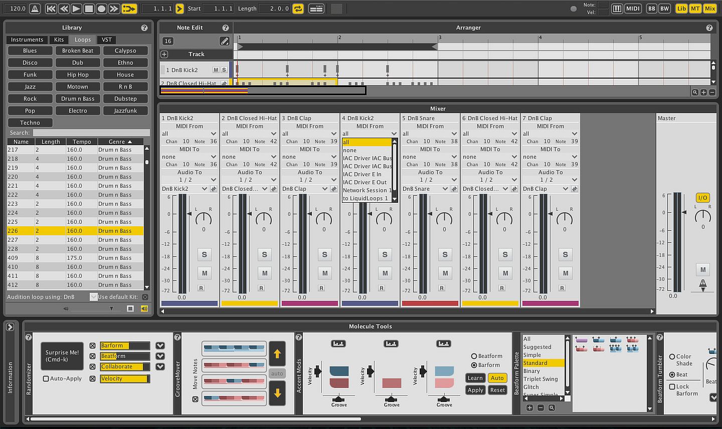 - See relationships between notes in your MIDI clips with Liquid Rhythm’s Music Molecule MIDI visualization technology.