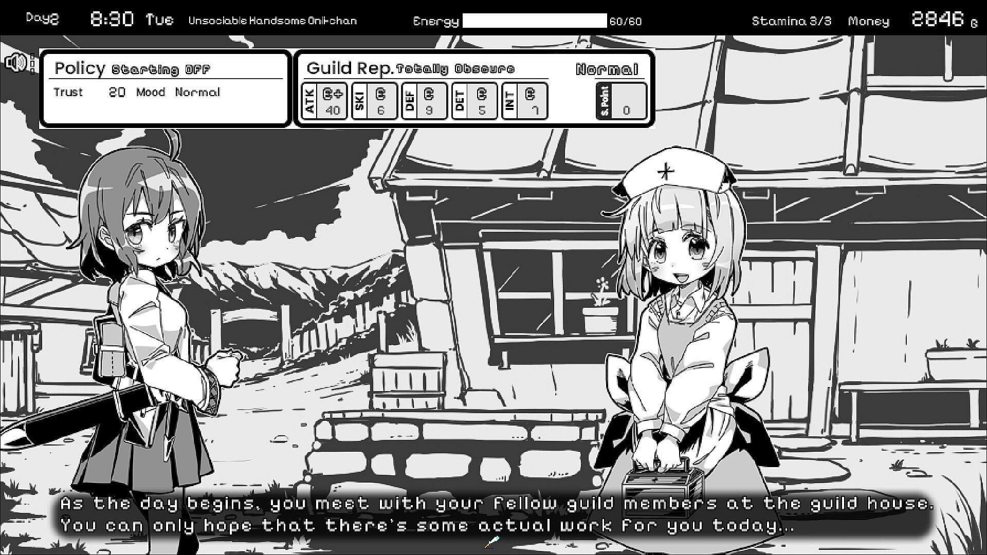The Mecua Guild is back... back in trouble! Following an alternate ending to the base game, the gang finds themselves buried up to their necks in debt and must give up adventuring for a more stable source of income. The hot spring resort awaits!