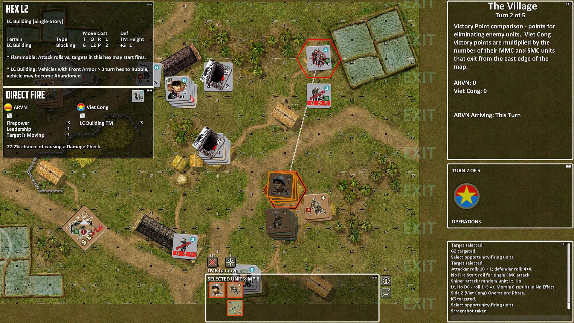 Heroes of the Nam Battlepack 2 brings the award-winning Lock ’n Load Tactical Series to the war in Vietnam. This squad-level game, with its fast-paced, intense impulse system, drops you right into the middle of furious jungle firefights and all-out, building-to-building assaults.