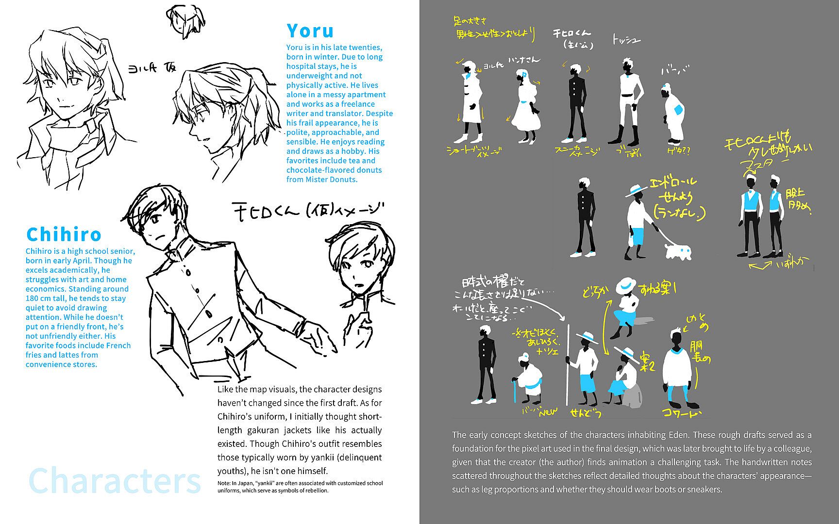 In addition to the core visuals, the book also includes early concept sketches, character profiles for Yoru and Chihiro, as well as a glimpse into the development process through light commentary from the creator. Whether you want to explore the game’s art in detail or discover its behind-the-scenes elements, this art book offers a complete visual journey into the world of Haru to Shura.