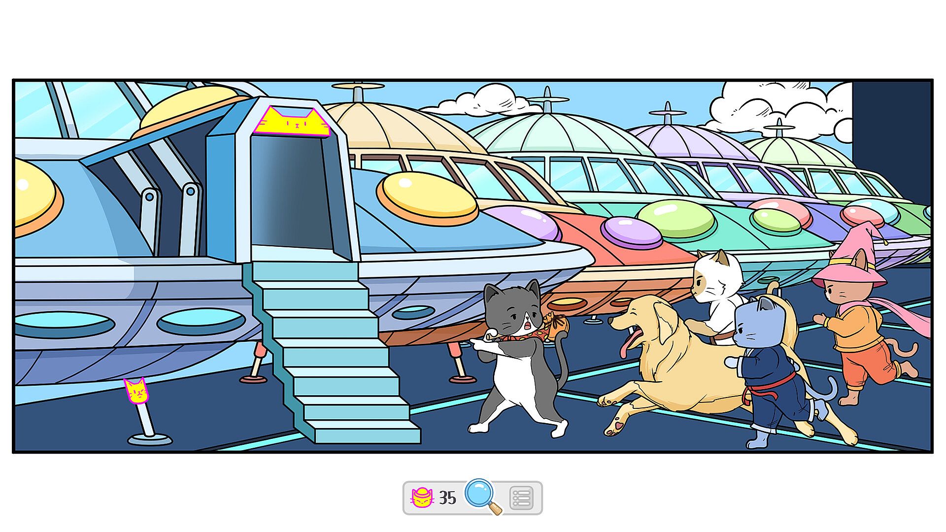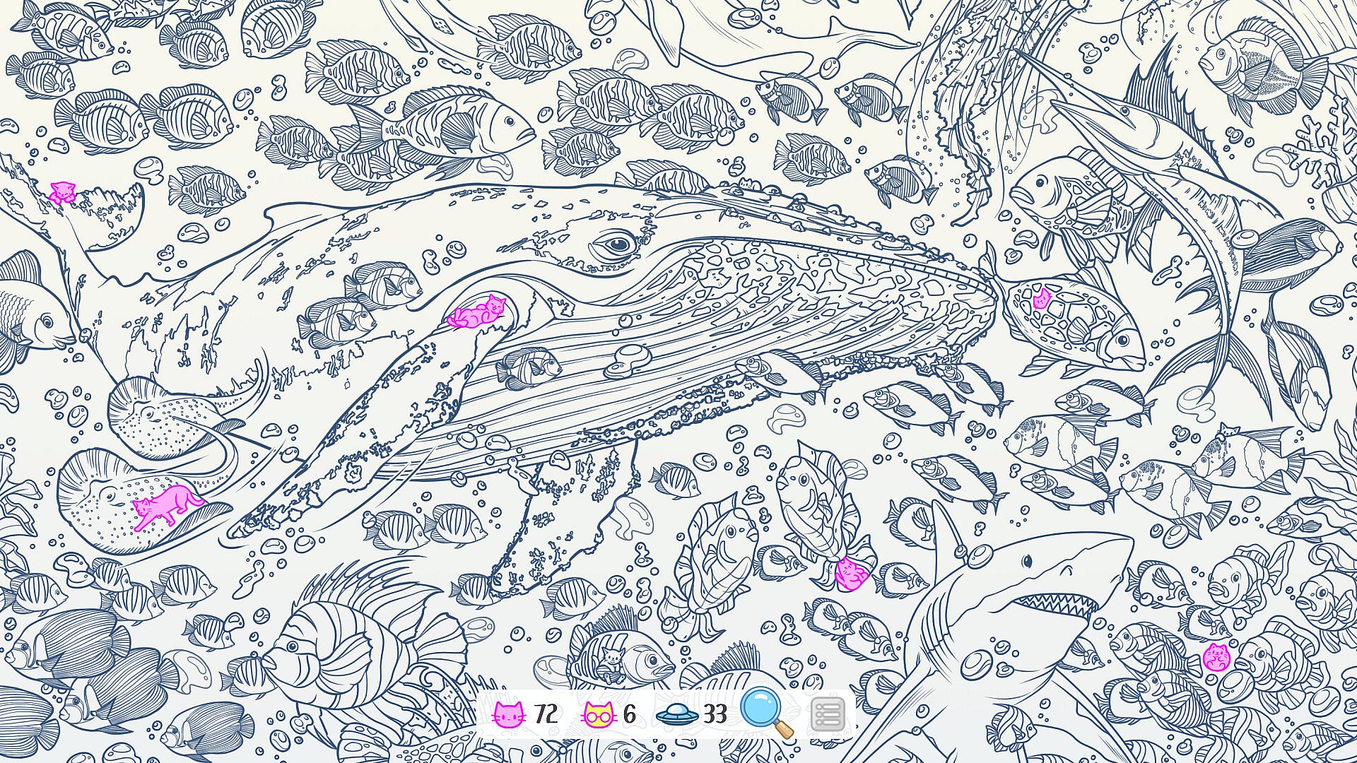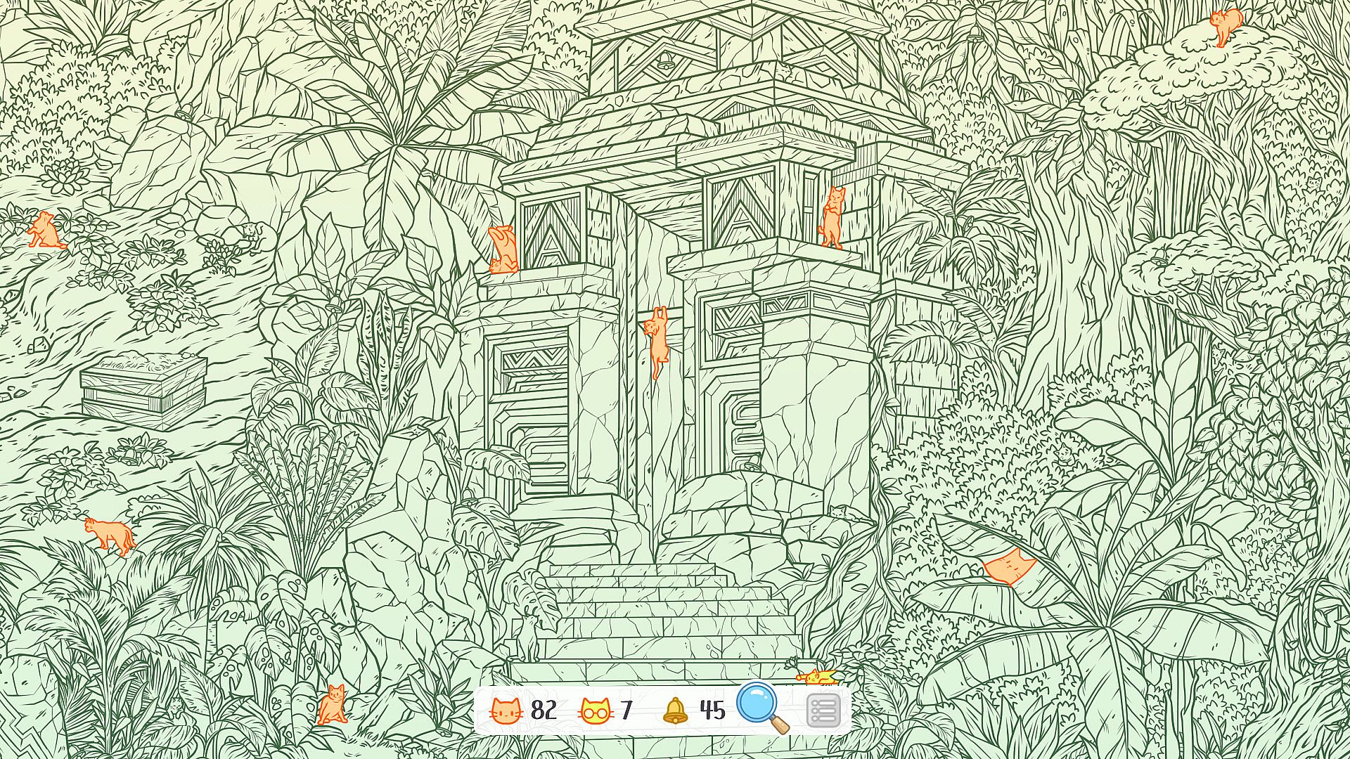 Find the cats hidden in the beautiful and diverse hand-drawn landscapes, and join the cat friends on their wacky adventure, meow!
