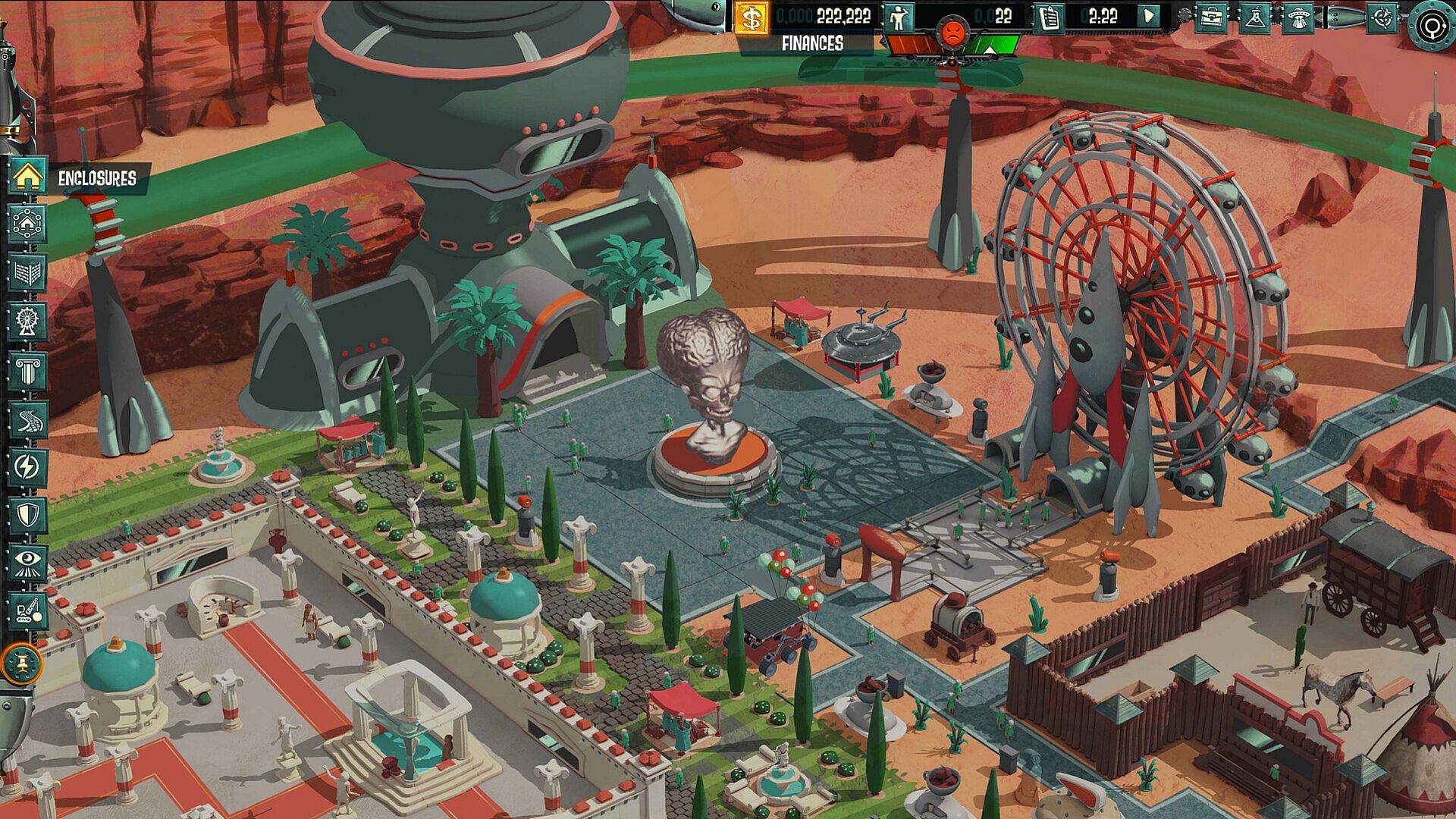 Featuring exclusive artwork that has never before been publicly released, this 54-page artbook includes behind-the-scenes concepts, illustrations, models and more from the development of Mars Attracts. With hundreds of curated images, as well as commentary from the game's artists, the artbook reveals the design philosophy of buildings, characters, and menus within the game.