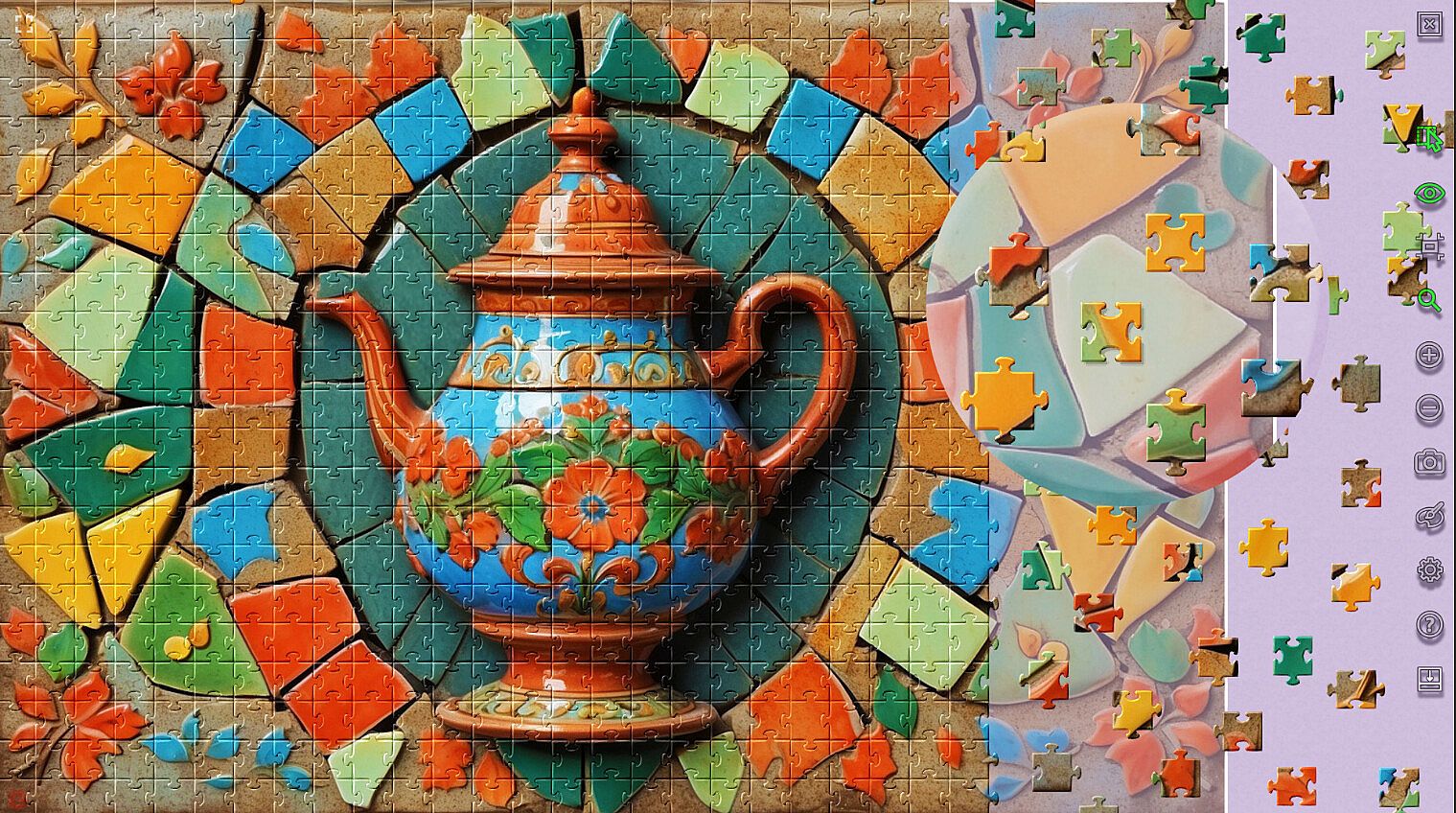 A huge collection of 75 puzzles uses broken ceramic shards to create vibrant and exciting mosaics that transform fragments into works of art. "Ceramic Mosaic" allows you to see the beauty in imperfection and appreciate the skill involved in connecting fragments into something extraordinary.