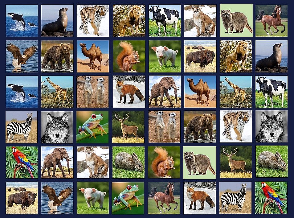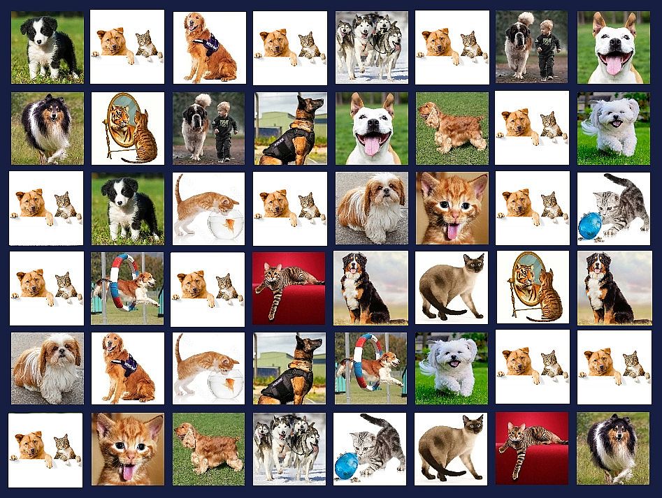 - There are rows of images, 8 images per row (so 3 rows for easy yields 3*8=24 image locations), but the images are 'covered' when play begins