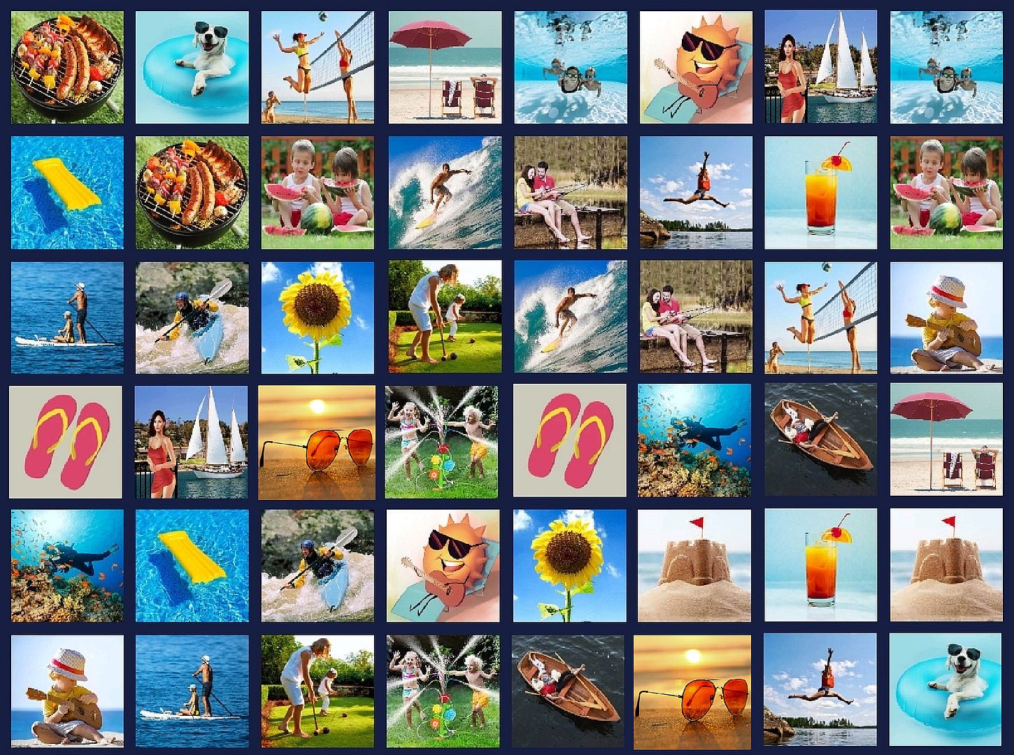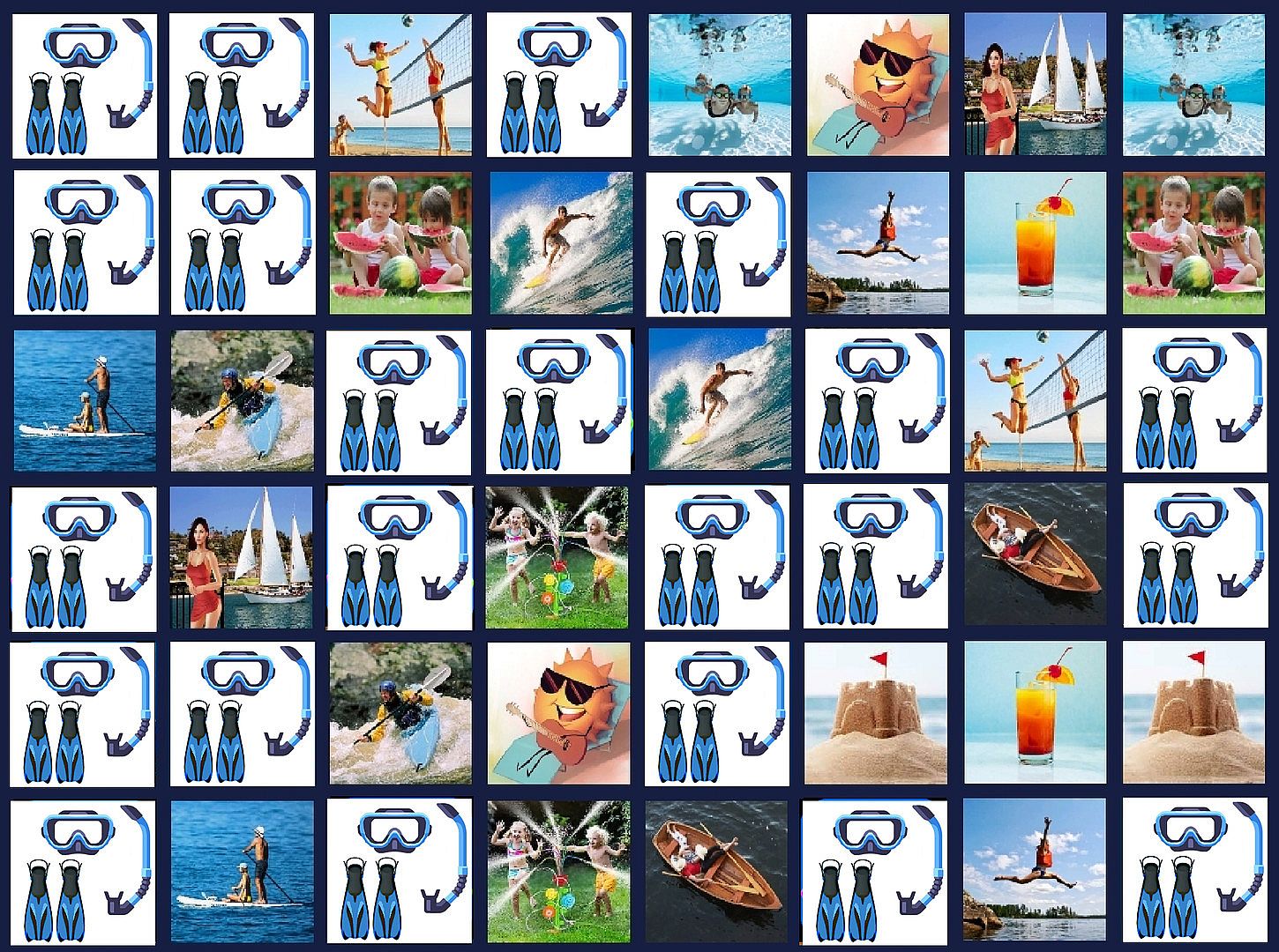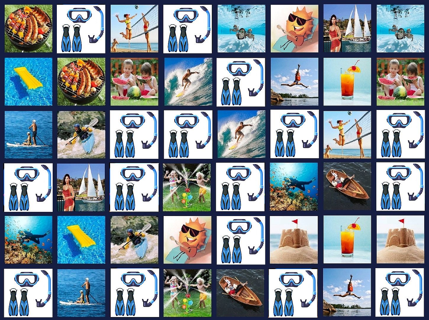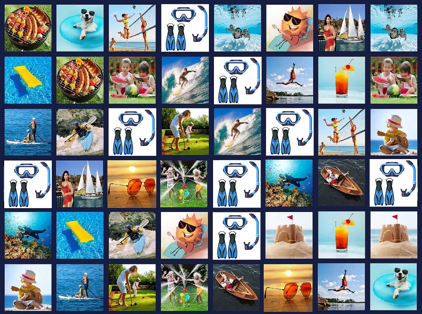 We have several more up-coming downloads (all inexpensive) with various theme images. - There are rows of images, 8 images per row (so 3 rows for easy yields 3*8=24 image locations), but the images are 'covered' when play begins