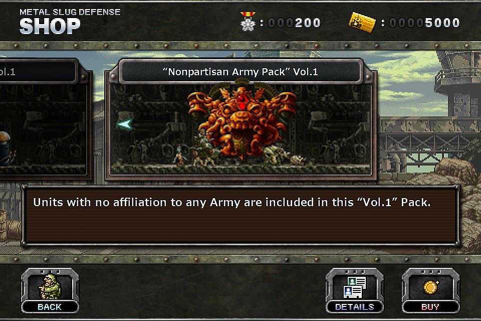 Yes. An official METAL SLUG DEFENSE - “Nonpartisan Army Pack” Vol.1 Steam store page is live, so you can buy METAL SLUG DEFENSE - “Nonpartisan Army Pack” Vol.1 on Steam or buy any METAL SLUG DEFENSE - “Nonpartisan Army Pack” Vol.1 PC Steam Key on XD.deals and redeem it instantly.