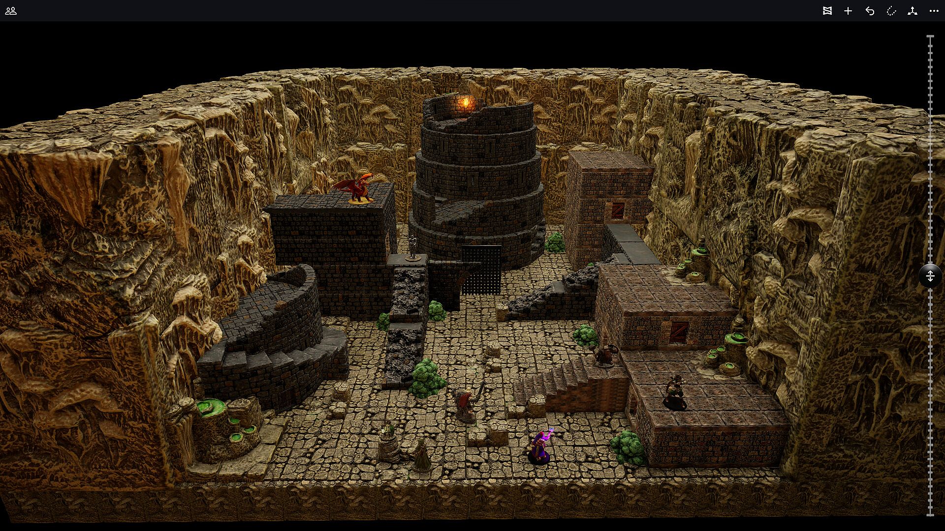 The base game for TTRPGs in 3D and Augmented Reality, and the Free Starter Set featuring digital dungeon and cavern terrain from Dwarven Forge and Fat Dragon Games, player minis from Hero Forge and Reaper Mini, plus our digital dice.