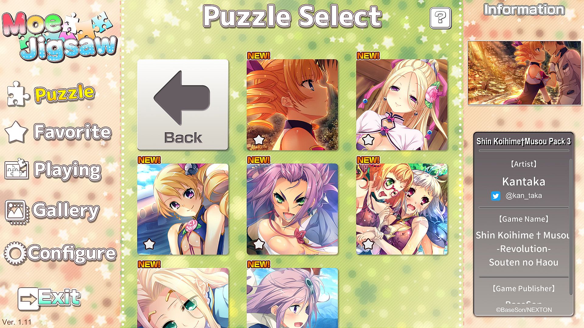 Before you start looking for a cheap Moe Jigsaw - Shin Koihime†Musou vol.3 Pack CD Key, take a moment to check the essentials. Developed by ARES Inc.. Published by ARES Inc.. PC released date: 20 Sep 2018. Genres: Indie, Casual. Categories: Family Sharing, Single-player, Downloadable Content, Steam Cloud.