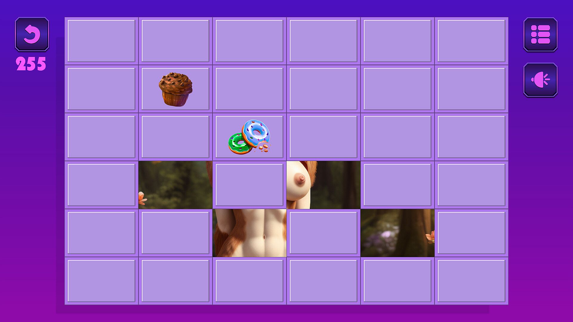 Remember symbols to reveal complete images piece by piece in this indie casual puzzle experience. Tackle eight fresh levels featuring fauns, each unlocking uncensored faun artworks in full HD. A relaxing soundtrack accompanies your progress, with a full art gallery for zooming via mouse scroll. Press C for cheat mode to finish any level instantly. All characters are 18+ years old. Casual players who enjoy laid-back memory challenges and artwork collection find a perfect fit here.