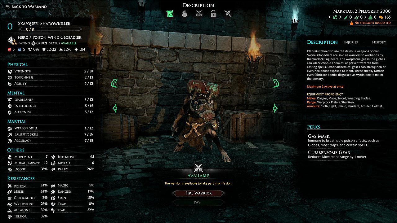 This Hired Sword is a new Hero-type unit that can be recruited to further customize your roster. The Poison Wind Globadier is available for the Skaven and the Cult of the Possessed Warbands.