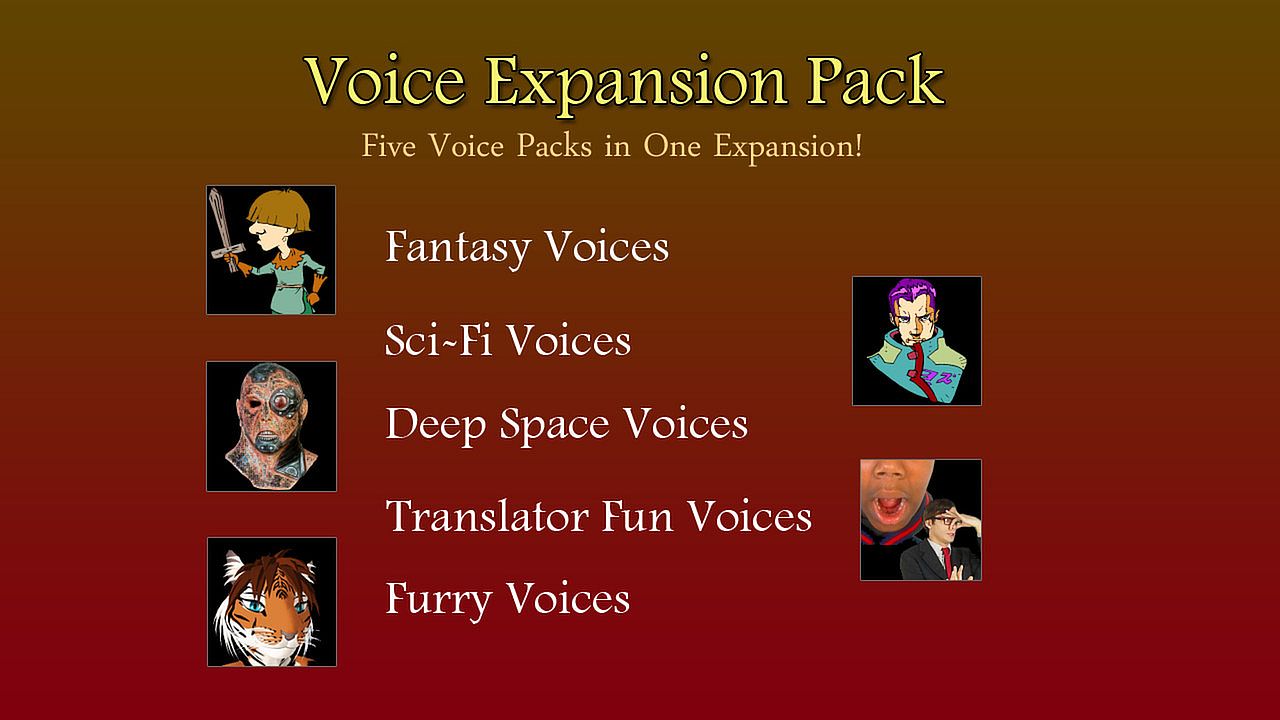 We have added 5 of our popular voice packs to give you 36 more voices in one convenient DLC!
