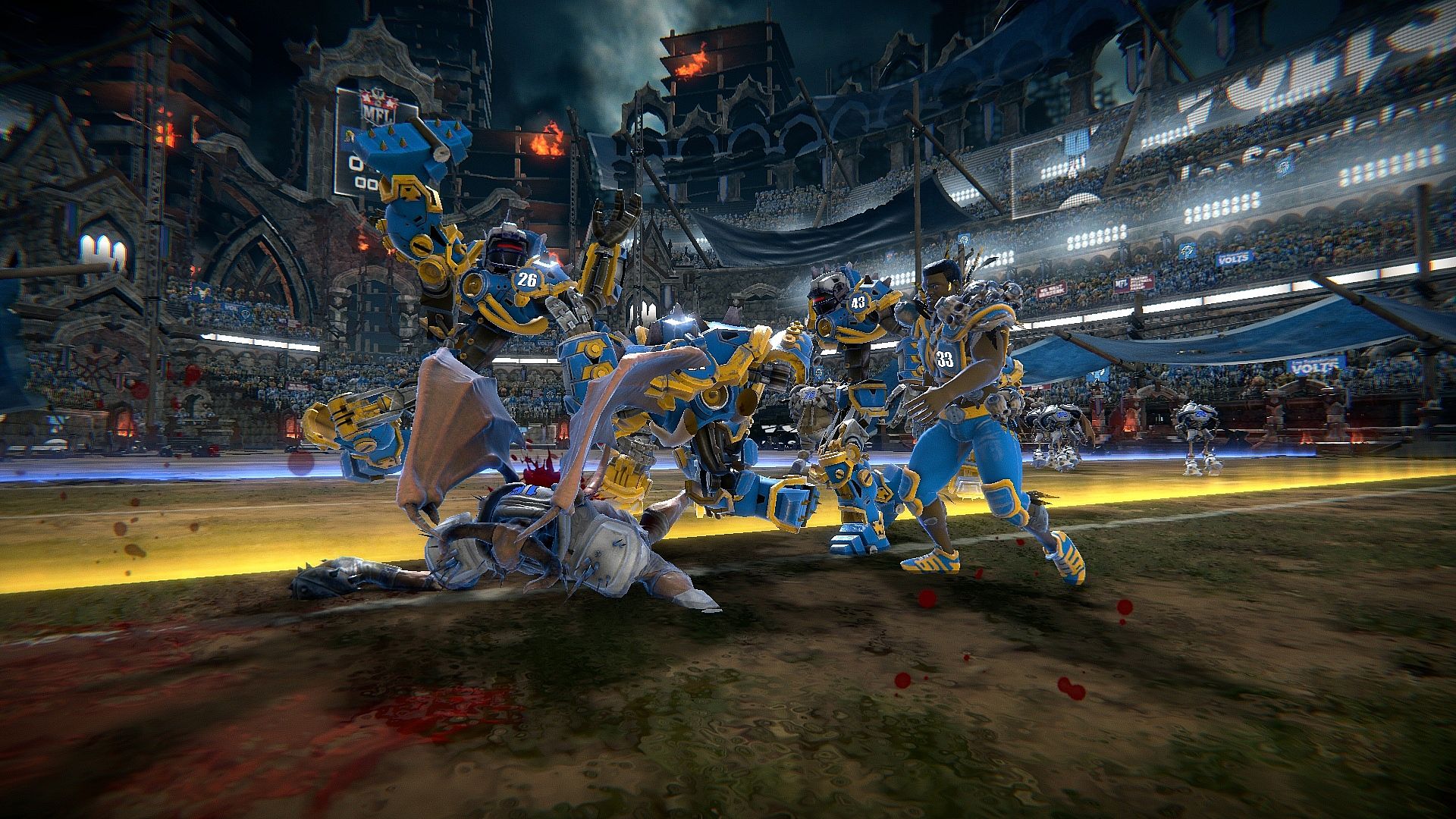 - Los Scandalous Volts Team – Led by All-Star veteran Bloody Livers, a smart, gutsy Quarterback who’s not afraid to throw the long ball or bash his skull against any defense. While their offense gets most of the acclaim their defense is stout and can bloody up any offense in the league.