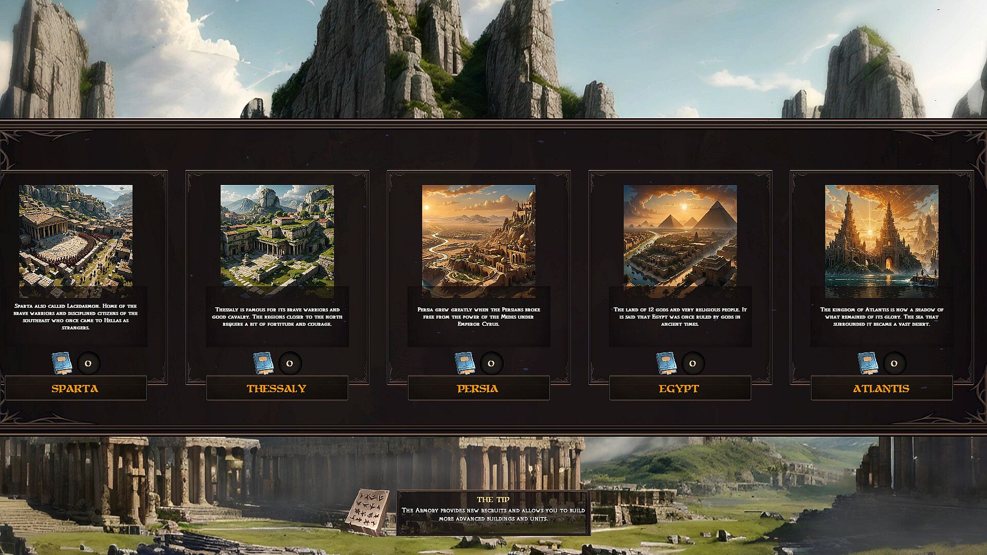 Egypt has a single, important ruler. Both Egypt and Atlantis have high-quality desert-hardened infantry with decent resistance to fire and cold.