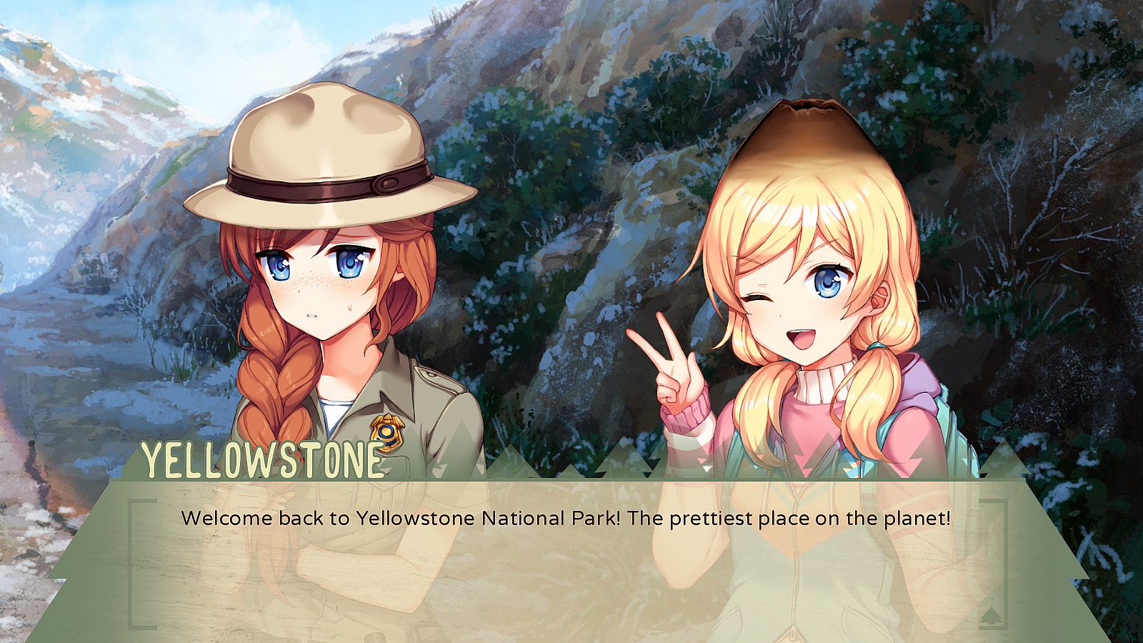 National Park Girls - Episode 2: Happy Trails is the second installment in the episodic visual novel National Park Girls. Join park ranger Eve Aadams as she goes on a (reluctant) hike with Yellowstone, learns more about the girls' origins, and causes the end of western civilization!