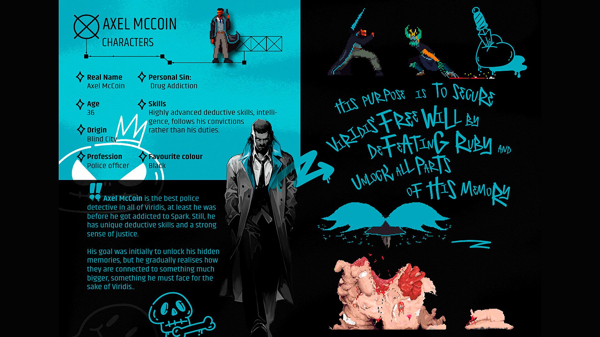 This art book explores the creation of the Neon Blood world and its inhabitants. See how our small team developed the art from concept sketches to the final versions of the game.