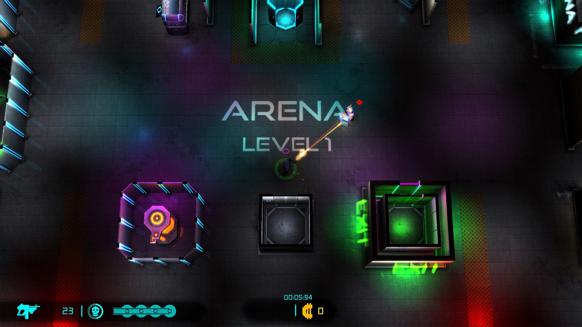 Neon Chrome - Arena is an arena type survival game mode with leaderboards. Your goal is to survive as long as possible using any means necessary. Endless streams of enemies will eventually end your fight. Play single or as a couch co-op! How high can you score before your demise?