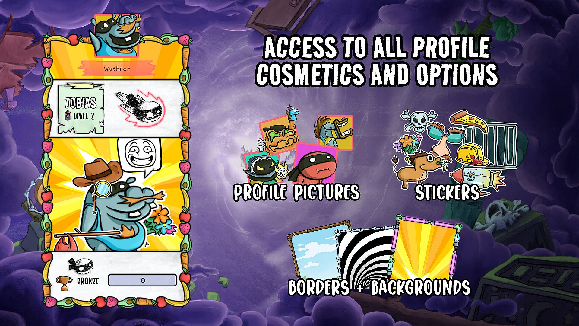 You can now use all unlocked profile customization items and all future ones. The number of stickers you can place on your profile increases from the basic 3 to 10. Pimp your style without limits!