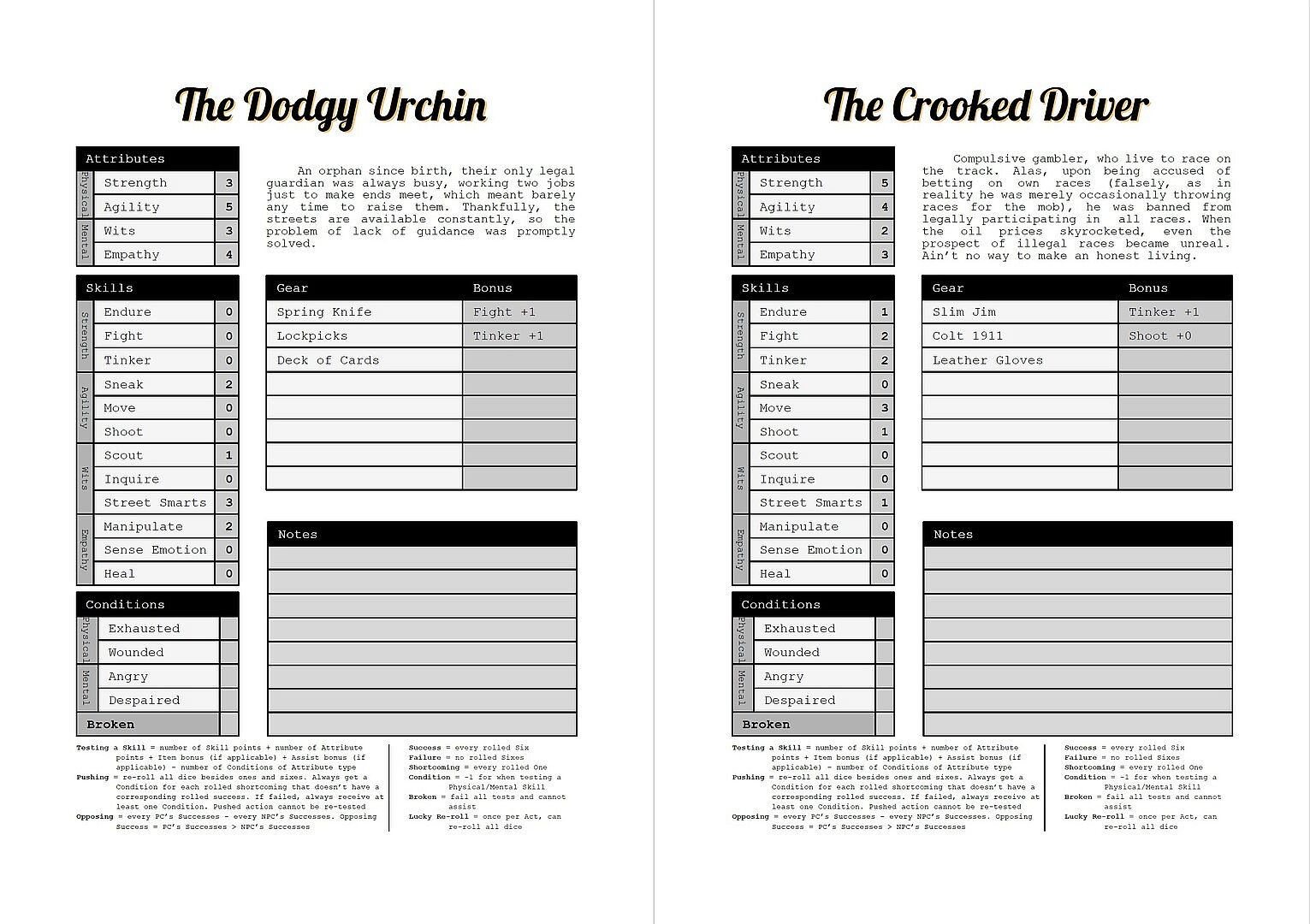 Experience the world in which the events of No Questions Asked take place from the perspective of a ragtag team of misfits in this print-and-play RPG scenario!