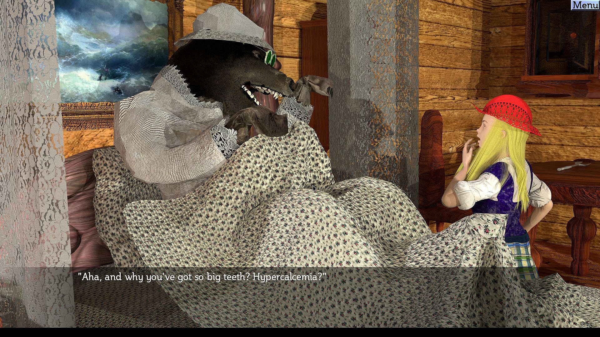 This visual novel is a collection of alternative realities. How events would turn out and how they end will depend on your choices.Visit wolf's den and solve his secret, or try to tame the wild beast.
