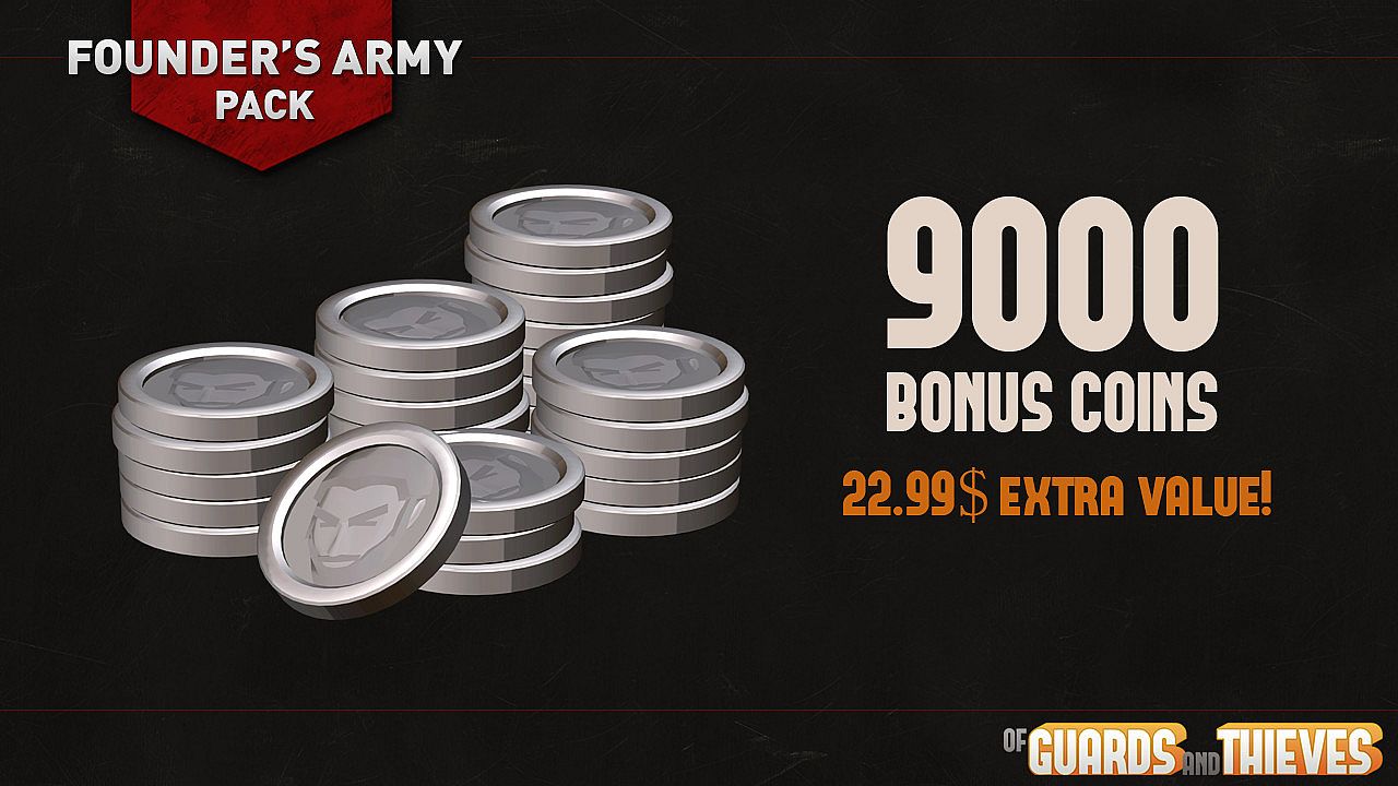 Want to join the Founder's Army? Get the Founder's Army Pack today and unlock a unique In-Game Badge plus a rich Skins and Avatars Collection, plus 9000 Bonus Coins instantly!