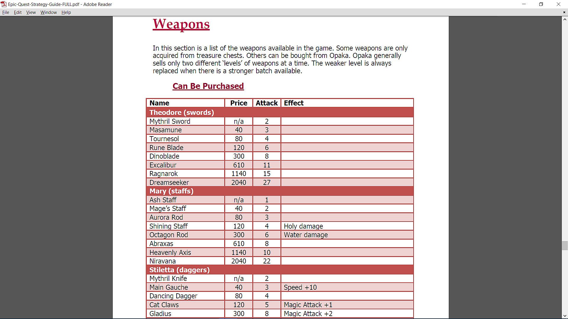 An extensive 87-page strategy guide and walkthrough for Epic Quest of the 4 Crystals!