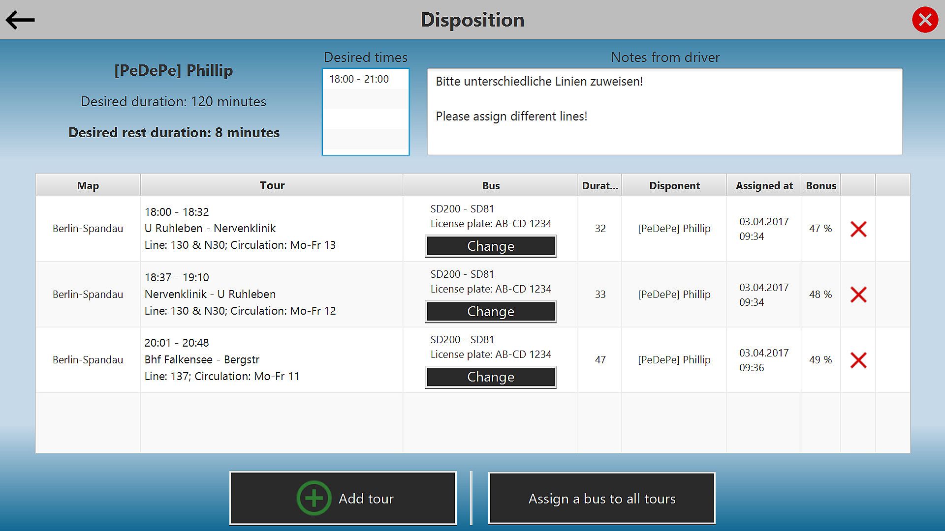 - Comprehensive bus management, incl. repairs, maintenance and trainings for repairing damages and performing maintenance works