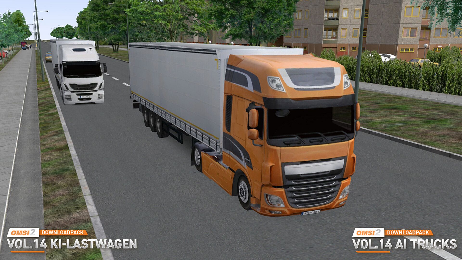 They are simply part of the traffic on the road: lorries. Download pack 14 brings a whole range of lorries to OMSI 2.