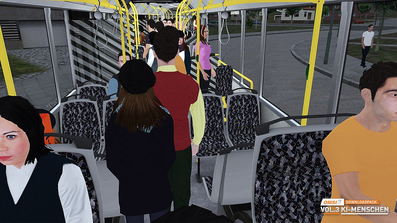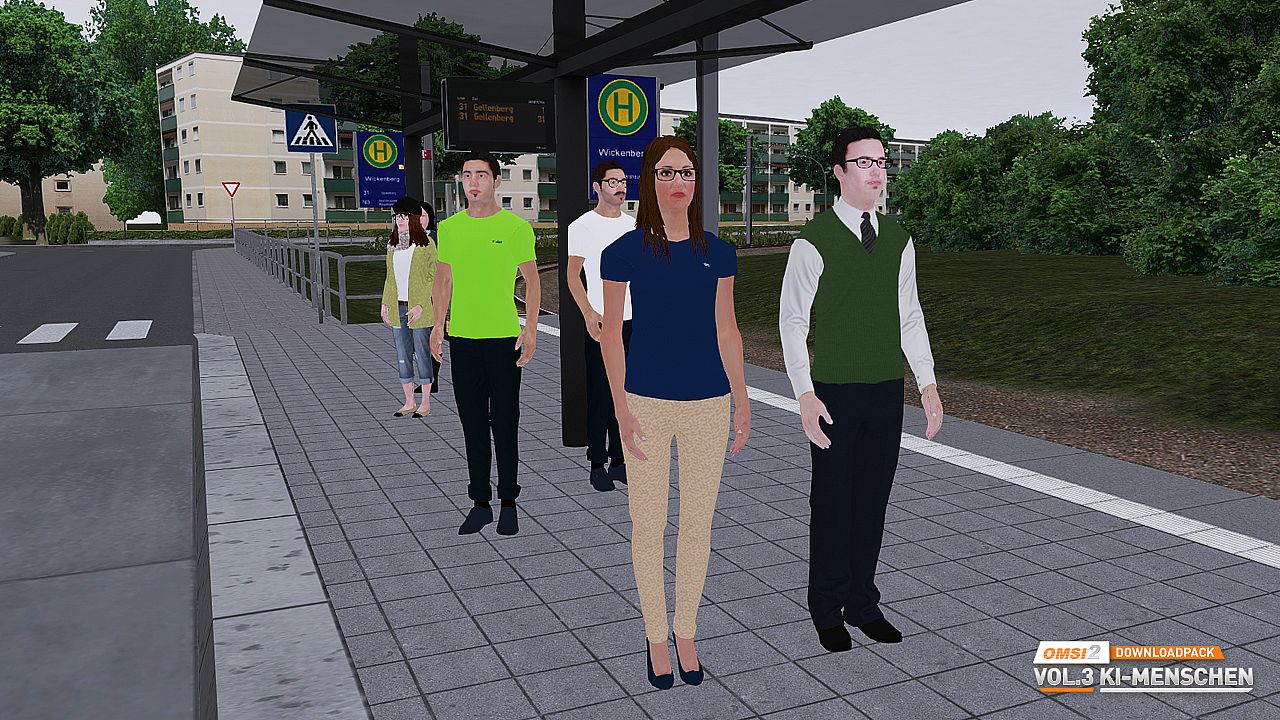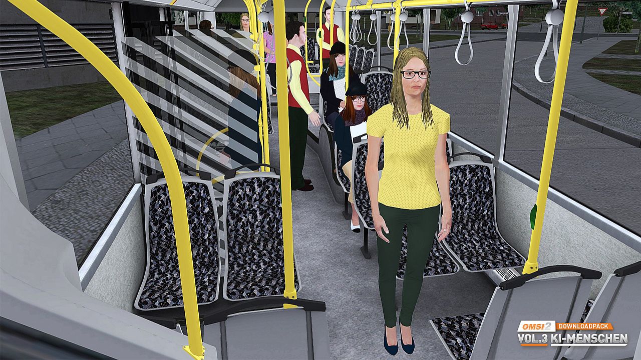 OMSI 2 Download Pack Vol. 3 contains people with 5 different body types and a large range of different characteristics and clothing styles. You will meet people with and without spectacles, beards or jackets and see them attired in dresses and skirts or in trousers. Numerous fashion variants in blue, green, red and yellow make for plenty of change on OMSI maps.
