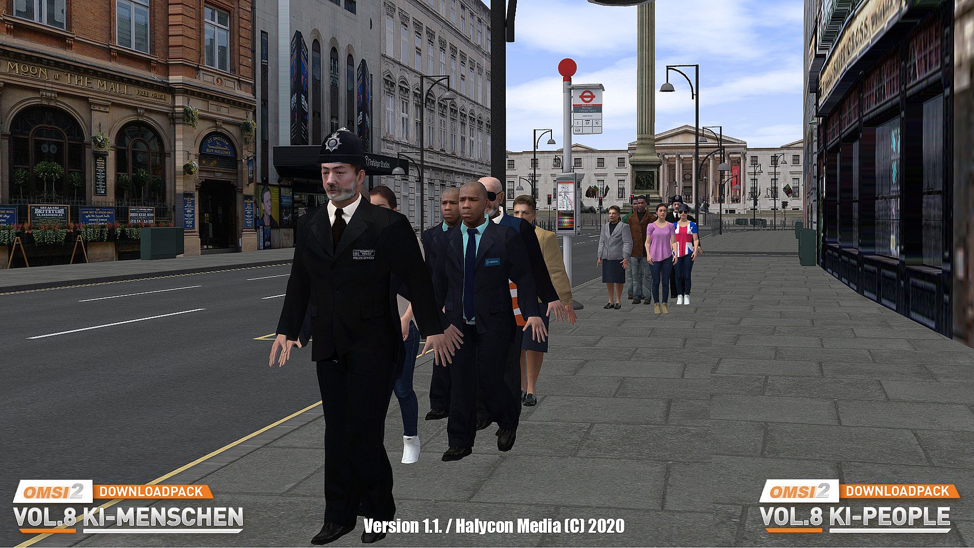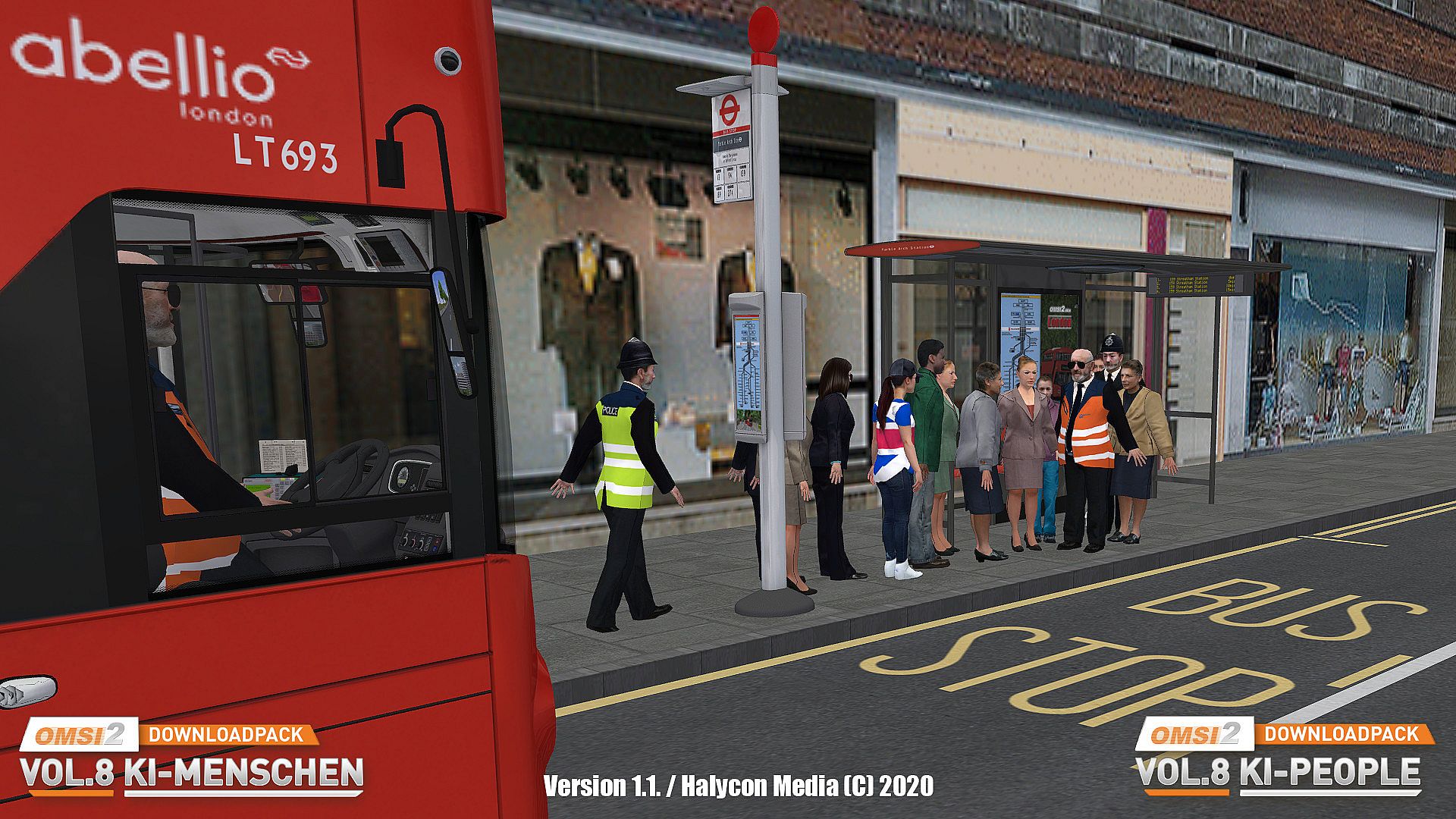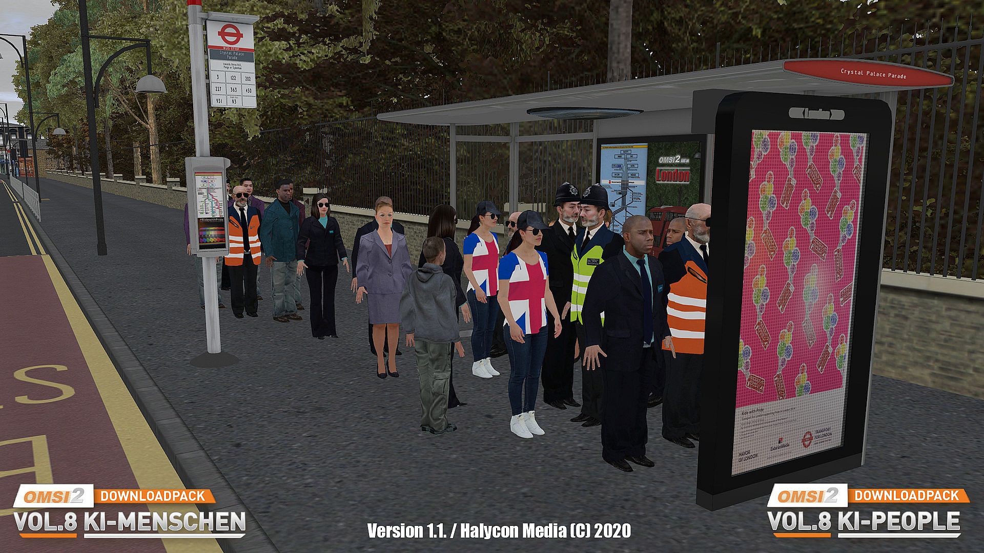 And from version 1.1 onwards, special AI passers-by and bus drivers for OMSI London (an English policeman "Bobby" and a UK teenager) are also included.