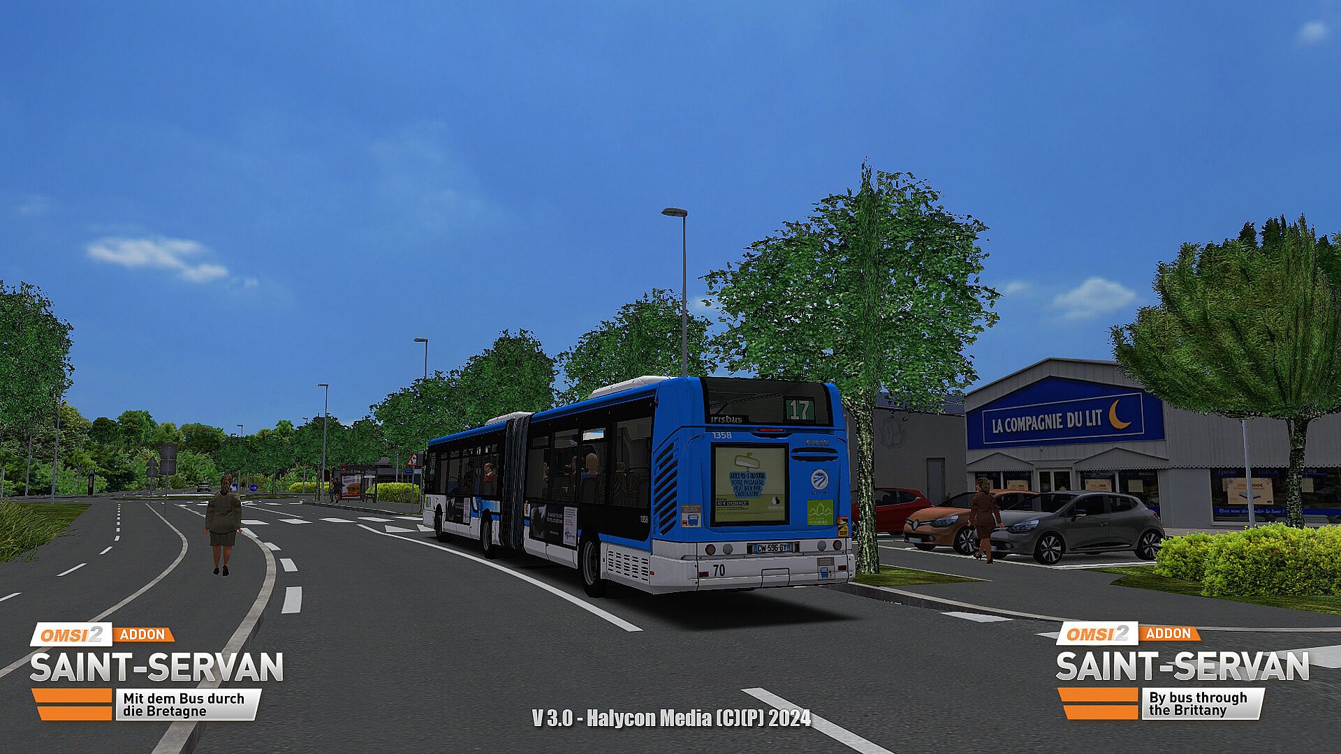 Saint-Servan has a very different atmosphere to foreign maps, and is a new experience on OMSI 2. The map is fictitious on the whole, but many Breton locations (notably the Vannes conurbation in Brittany) have been faithfully reproduced.