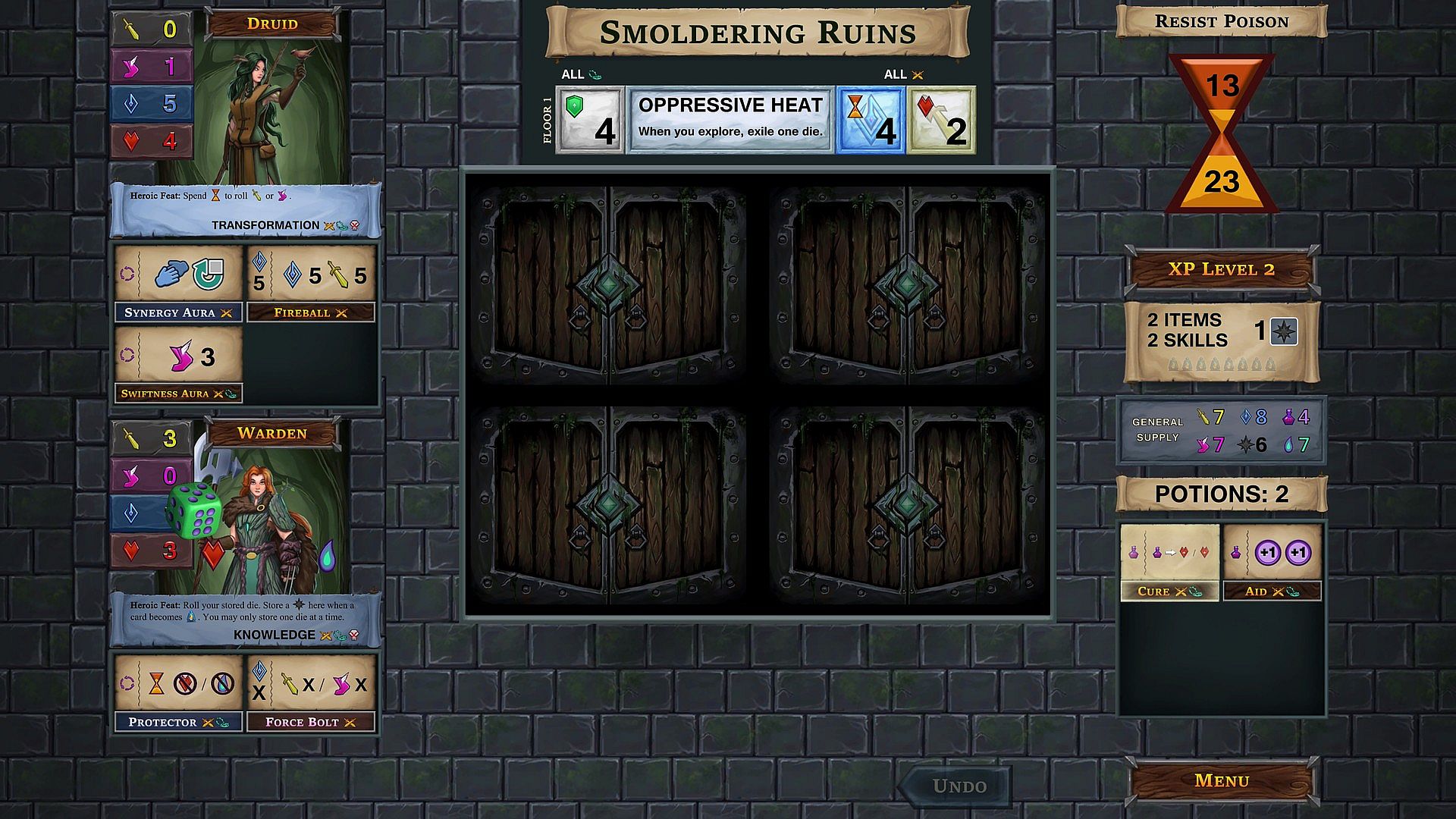 Heroes tackle lush yet deadly locales in One Deck Dungeon - Forest of Shadows, navigating mossy underground tunnels and connected forest areas. This expansion brings five new heroes-Alchemist with potion expertise, Druid commanding forest defenses, swift Hunter, blade-dancing Slayer, and green guardian Warden-plus five perilous dungeons like dragon-haunted Lair of Indrax, grimy Mudlands, toxic Realm of Venom, fiery Smoldering Ruins, and soul-corrupting Vile Roots. A 44-card encounter deck works solo or blends with the original for doubled content. Players bust through doors to battle foes and dodge perils, sticking to familiar core loops with fresh twists and cards. Strategy RPG fans who crave indie adventure expansions with bold heroes and varied dungeons will find plenty to explore on PC.