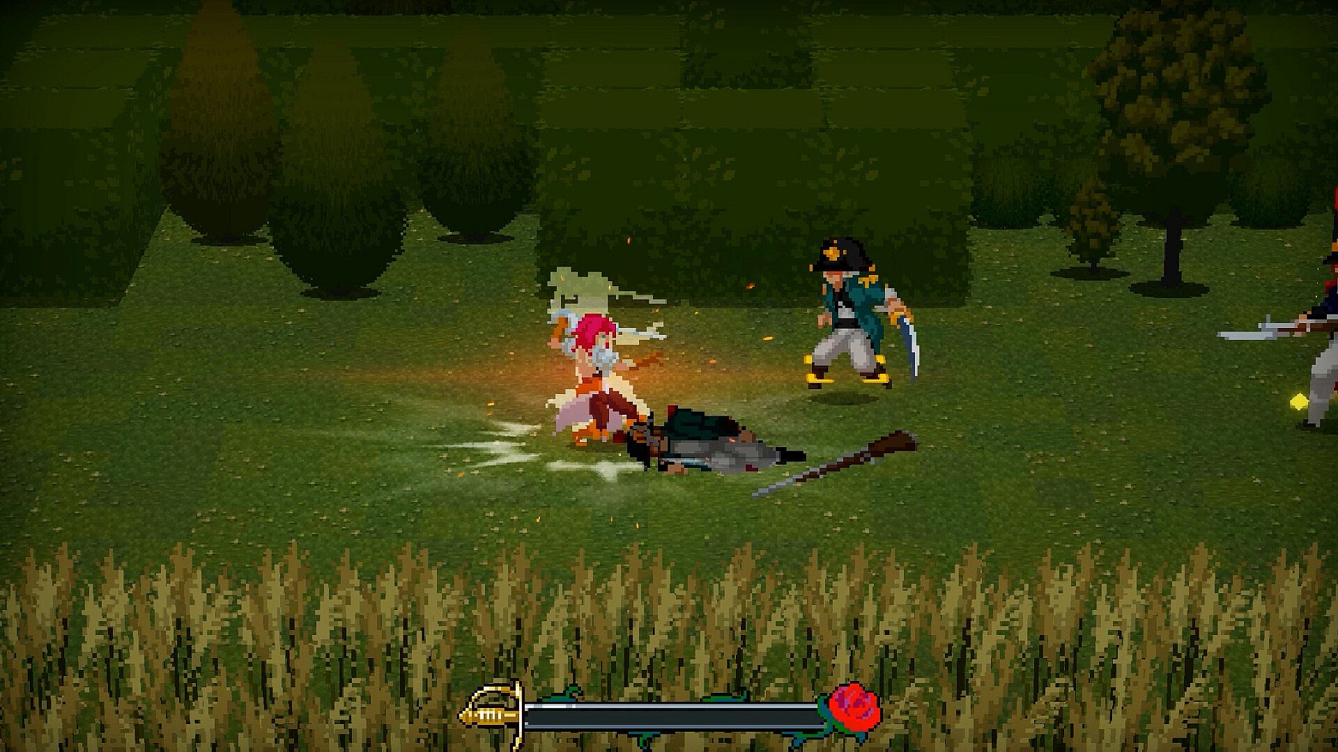Once the Espada Maestra of the court of Princess Seraphina, Alessia is renowned across the land for her elegant and peerless dueling skill with the rapier. With unbound crimson locks flaring like a guardian flame, Alessia dutifully watches over the princess, reducing to ash those harboring ill intent upon the crown.
