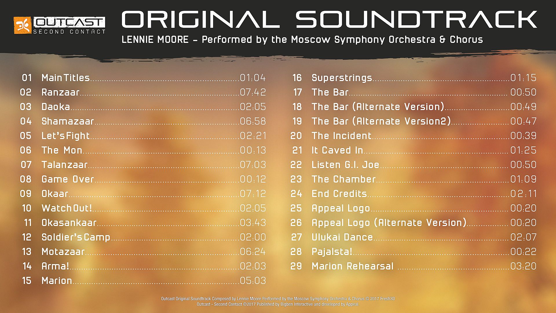 Before you start looking for a cheap Outcast - Second Contact Original Soundtrack CD Key, take a moment to check the essentials. PC released date: 14 Nov 2017. Genres: Action, Adventure. Categories: Family Sharing, Steam Trading Cards, Single-player, Downloadable Content, Stats, Steam Achievements, Steam Cloud, Partial Controller Support.