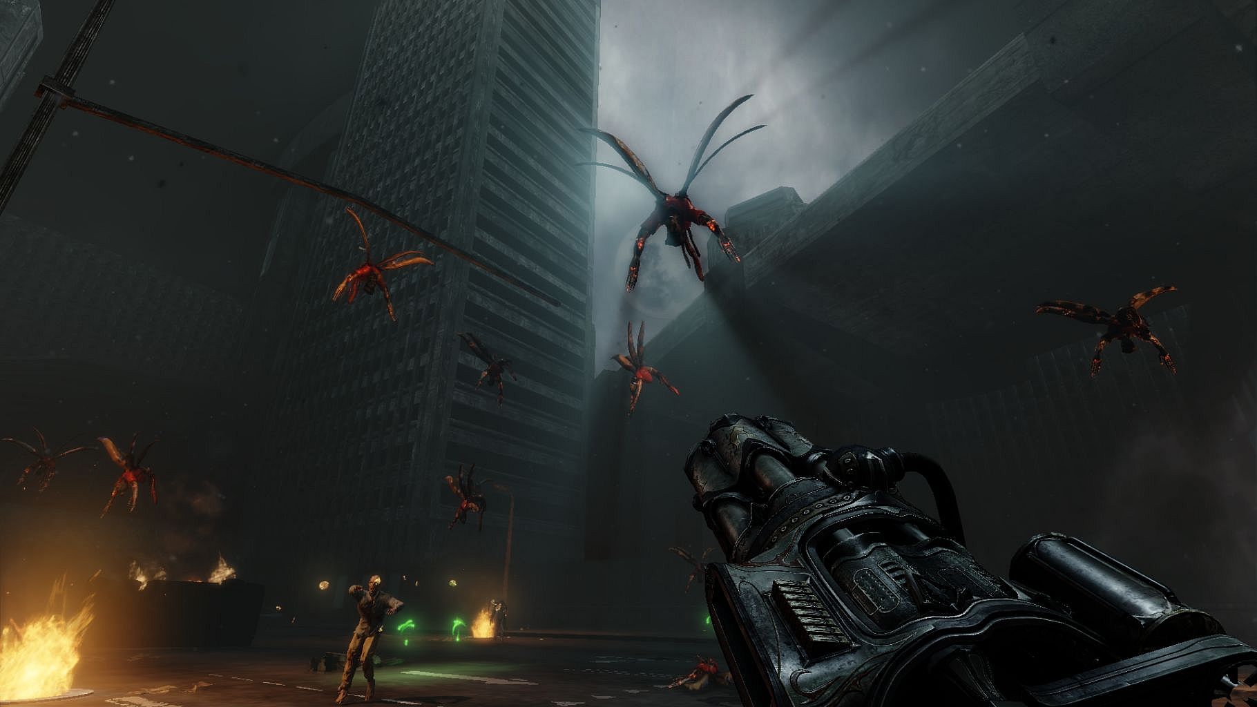 - Revamped enemies: Apocalyptic Zombies in various shapes and suitably bizarre fashion statements, Winged Demons, Apocalyptic Amputee, Minigun Hell-Bikers, Giant Spider Minibosses