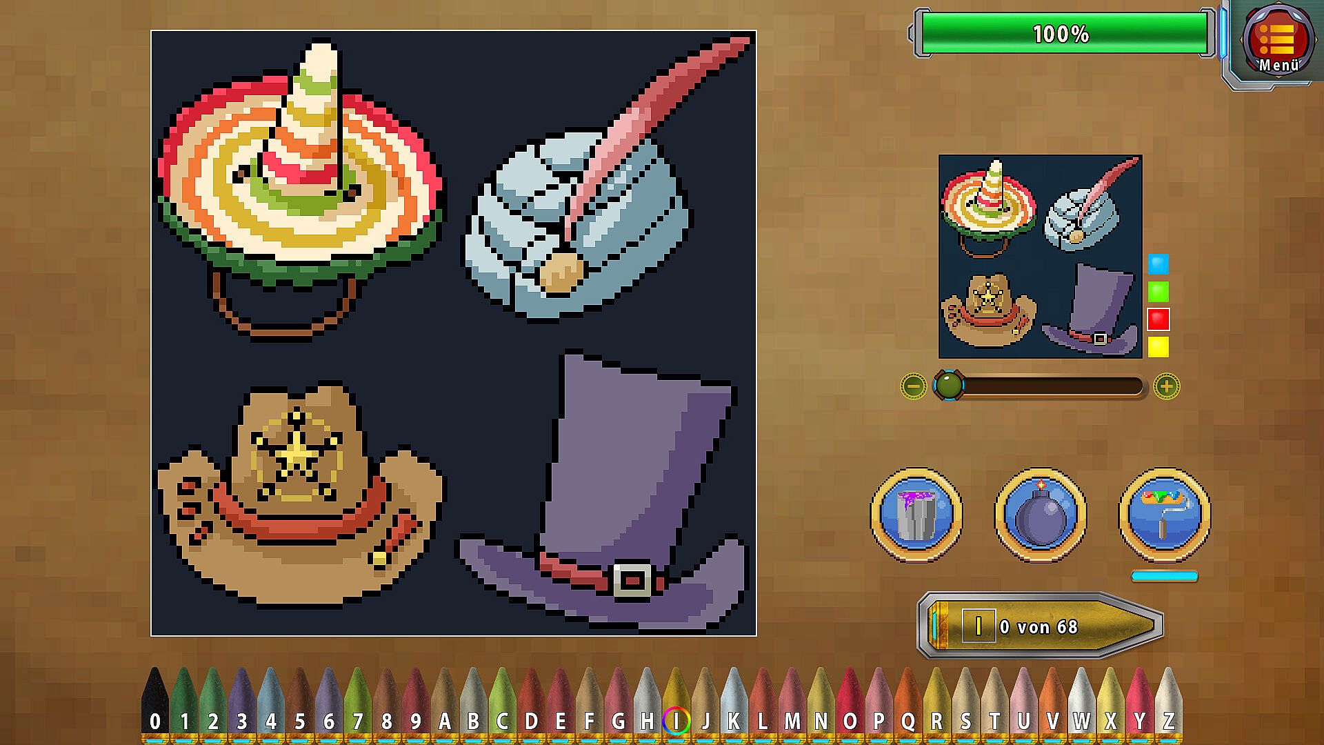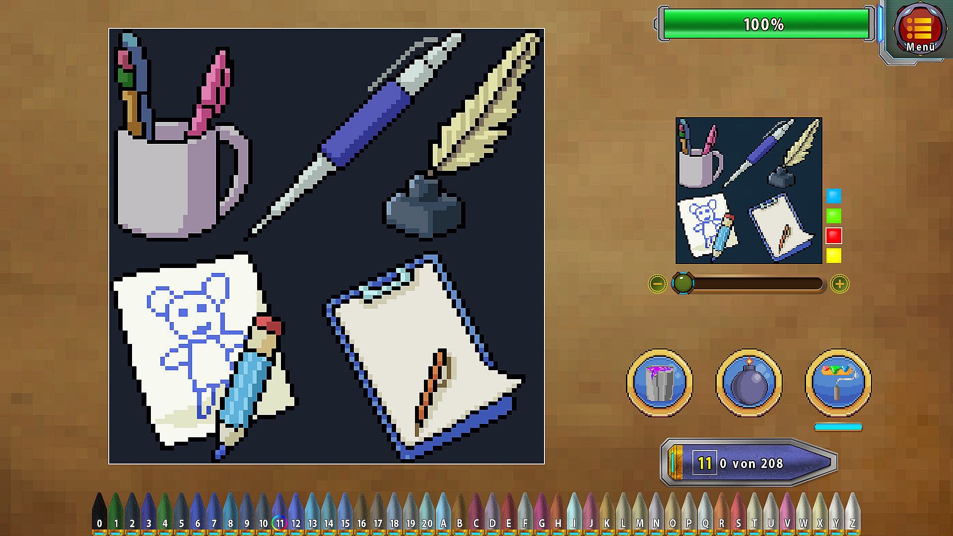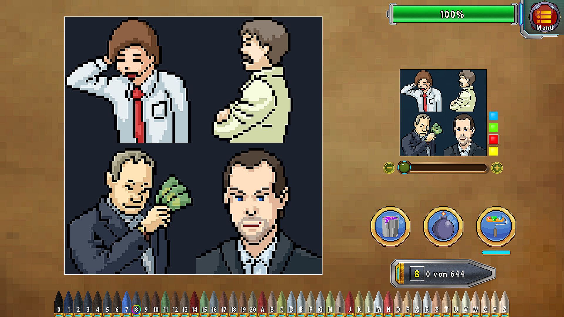 Paint by numbers and take portraits of various pixel art scenes!