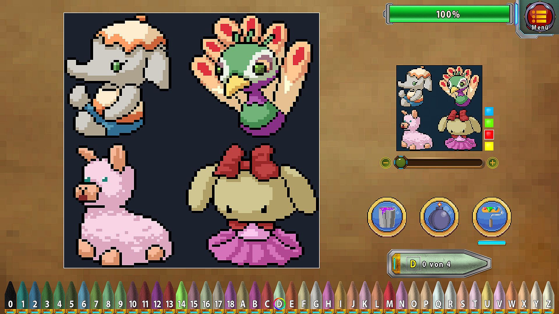 Paint by numbers and take portraits of various pixel art scenes!