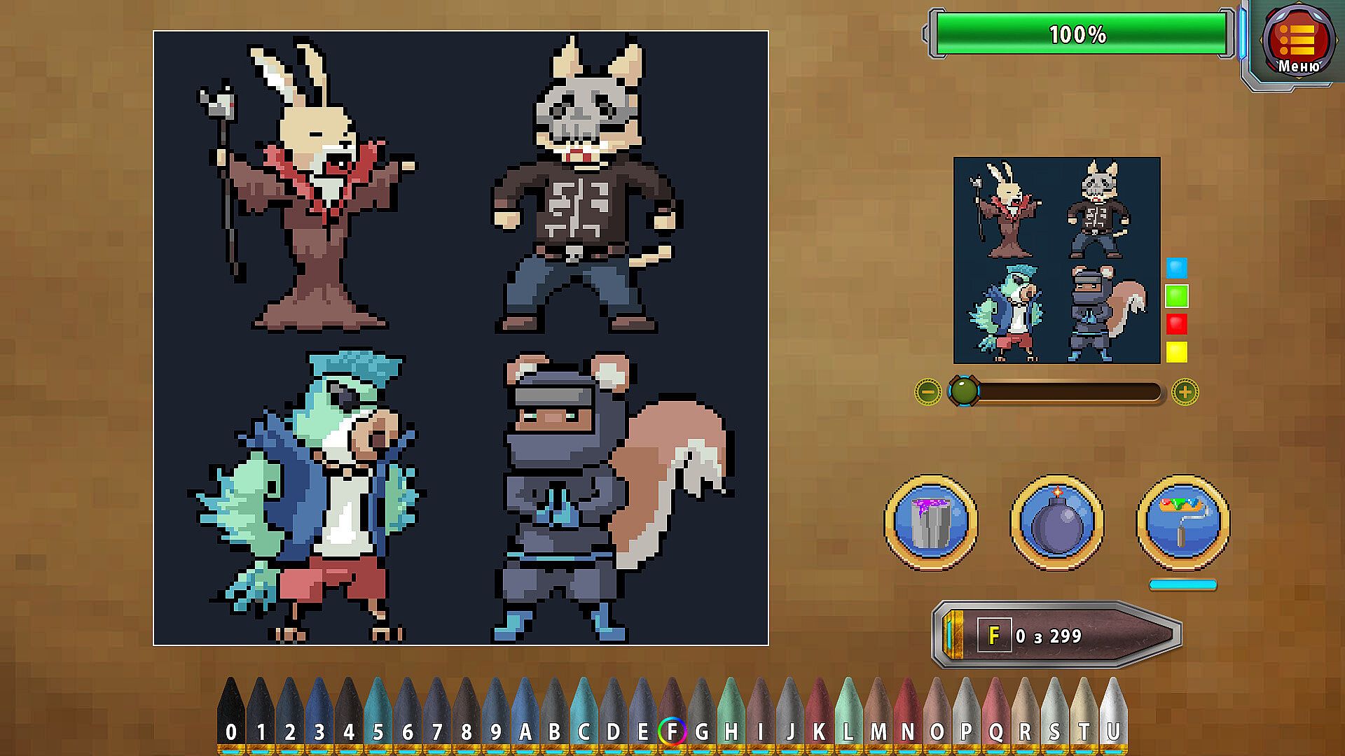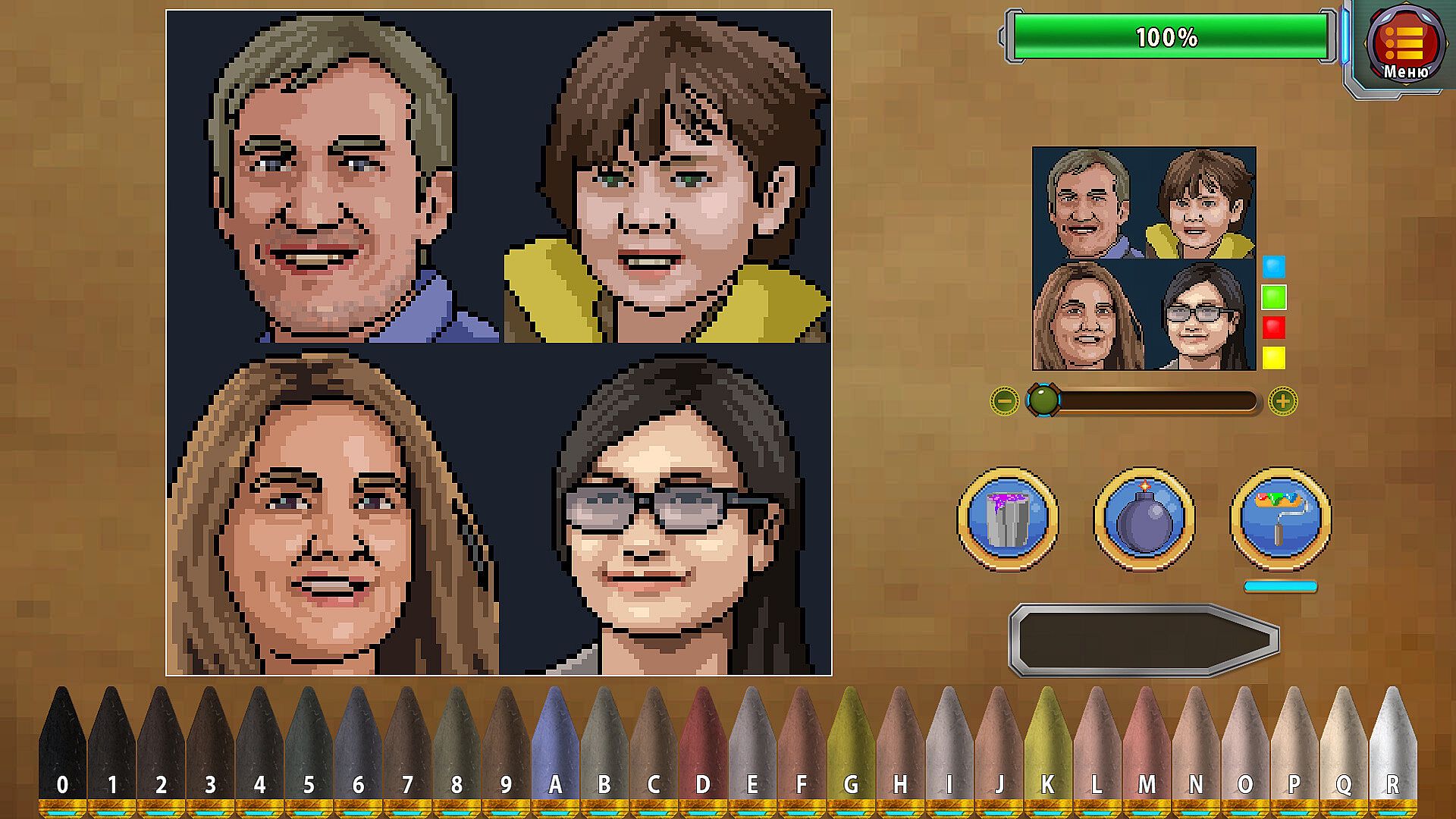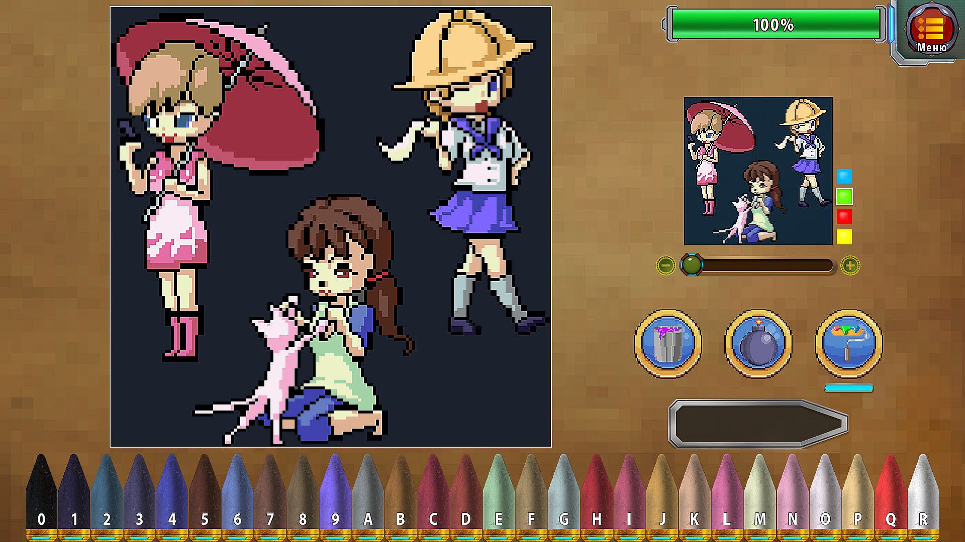 Paint by numbers and take portraits of various pixel art scenes!