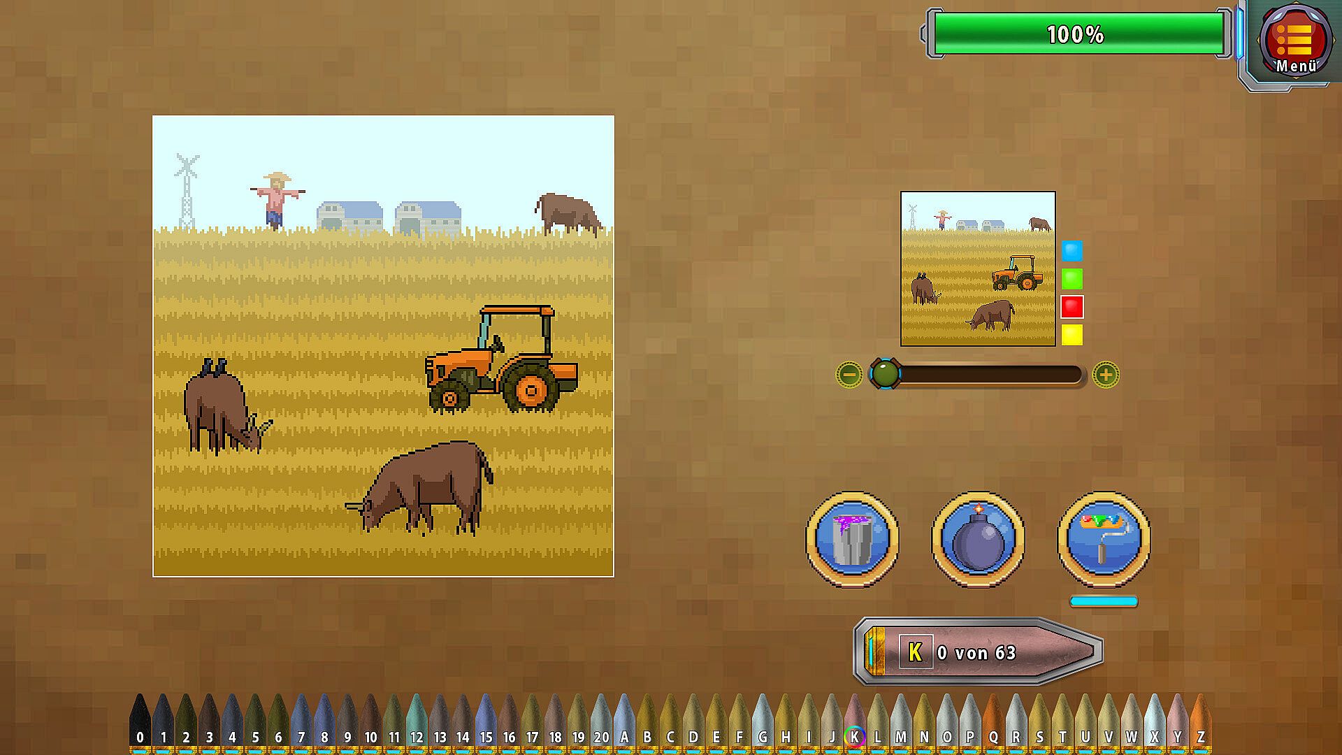 Paint by numbers and take portraits of various pixel art scenes!