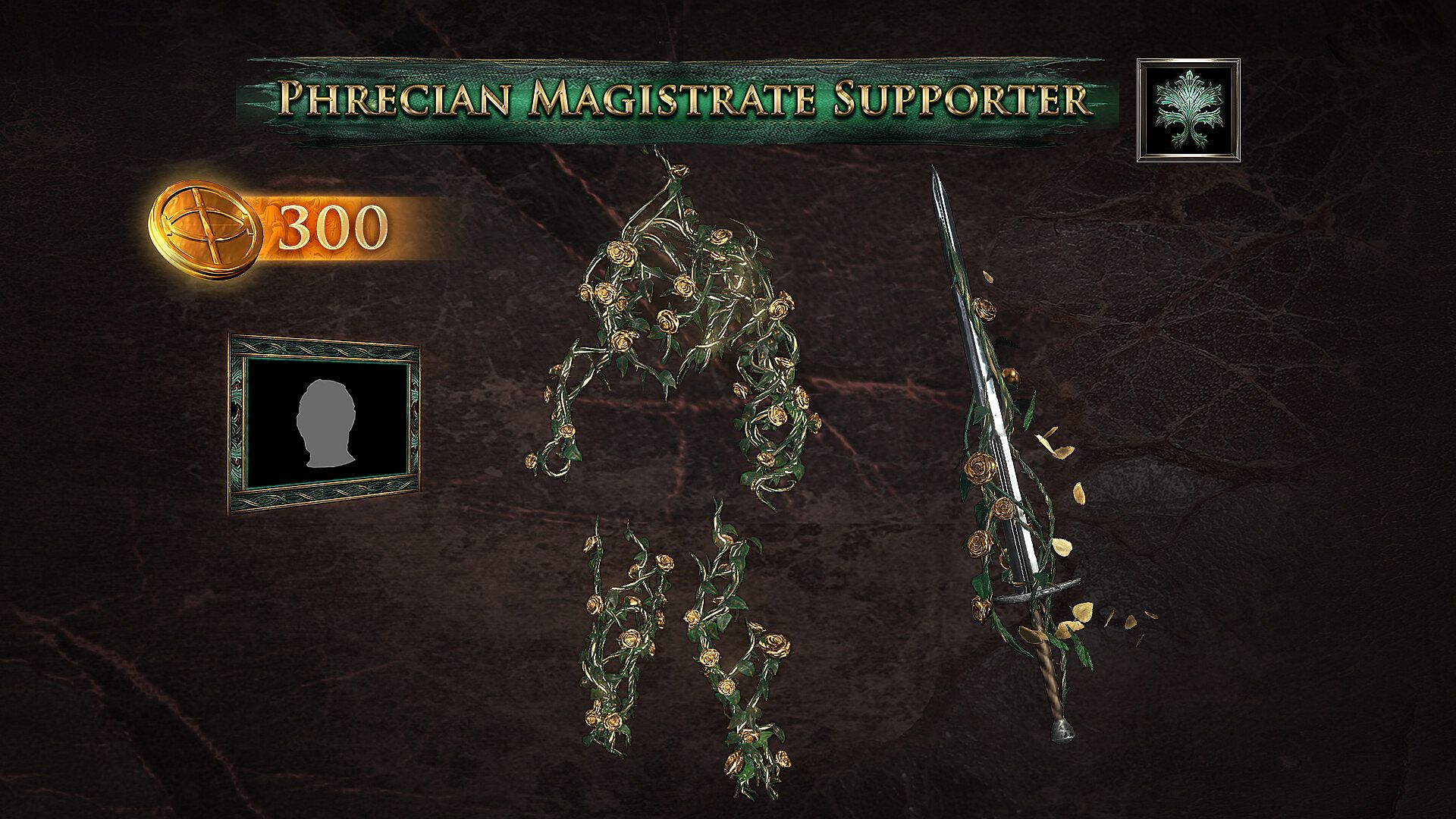 Interested in Path of Exile - Phrecian Magistrate Supporter Pack? We're tracking prices from trusted stores. Add Path of Exile - Phrecian Magistrate Supporter Pack to your wishlist and we'll notify you when deals become available.