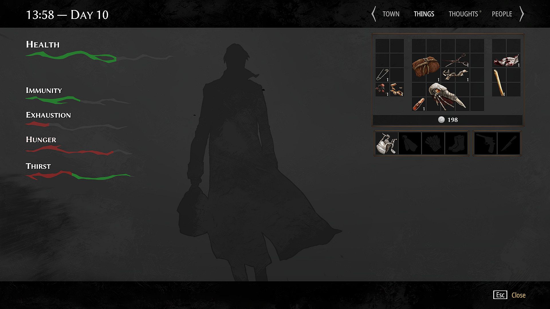 • Lenient survival compared to the main game. While you still need to manage your body, it’s less pressing. It’s almost as if the Bachelor didn’t try to cling to life too much…