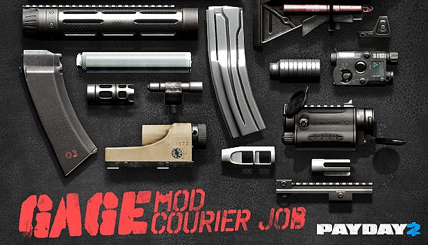 The Gage Mod Courier DLC is the sixth DLC for PAYDAY 2. It allows players to act as a courier for Gage the arms dealer, picking up packages containing mods that are scattered all over D.C. The DLC introduces no less than 28 new weapon modifications for the player to tinker with. 10 achievements are also added for players that enjoy achievement hunting.