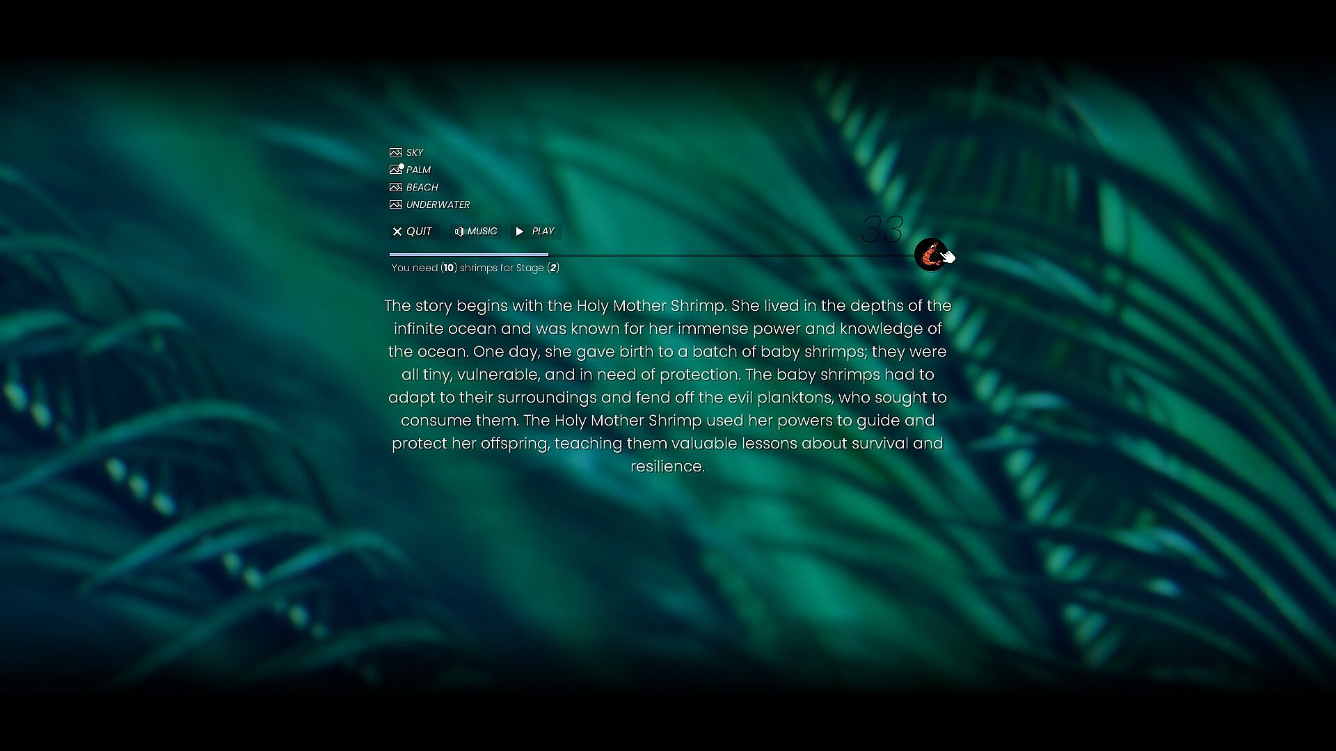 - Features Shrimp Button that you have to click in order to progress the story forward