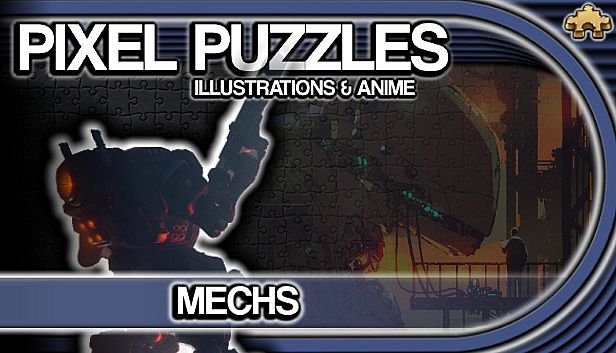 Pixel Puzzles Illustrations & Anime - Jigsaw Pack: Mechs delivers eight distinct online jigsaw puzzles centered on mech illustrations. Players assemble detailed images like Companion with 169 pieces, Destroyer at 140 pieces, and Maintenance featuring 330 pieces, alongside Collapsed, Transport, War, Minions, and Fire. The collection totals 1508 pieces for a focused casual puzzling session on PC.