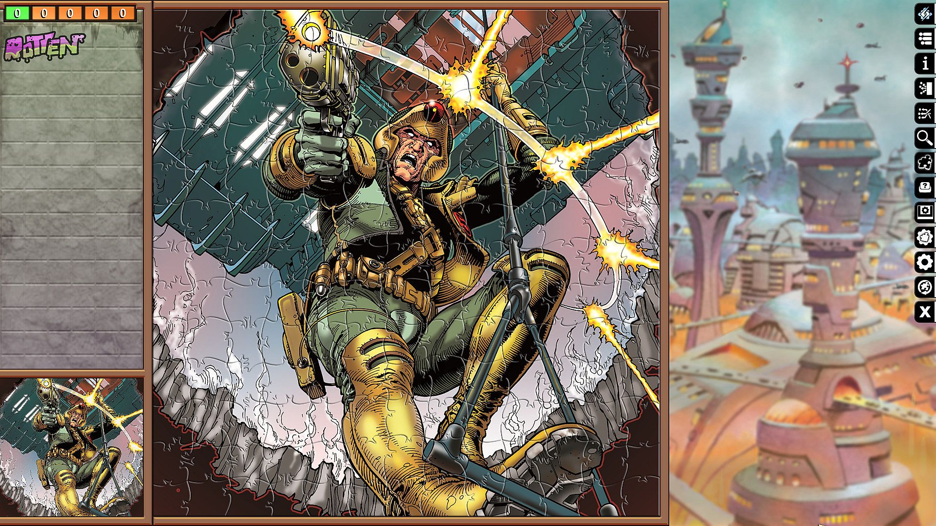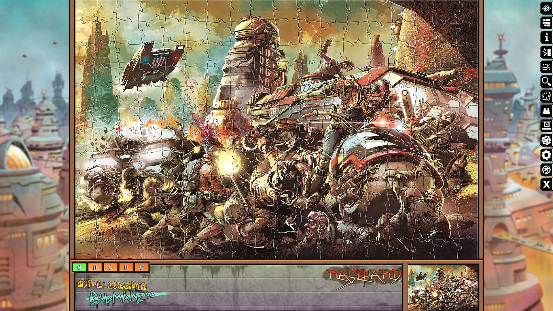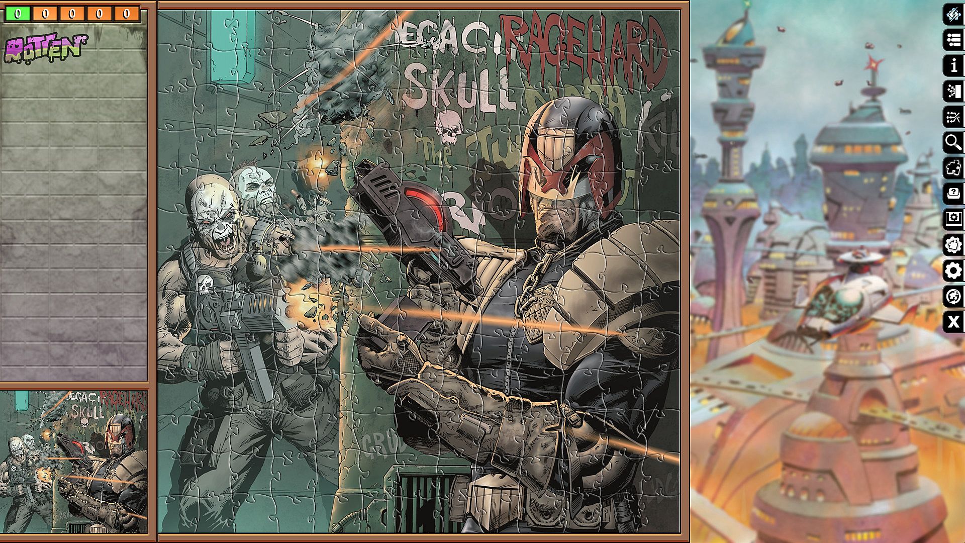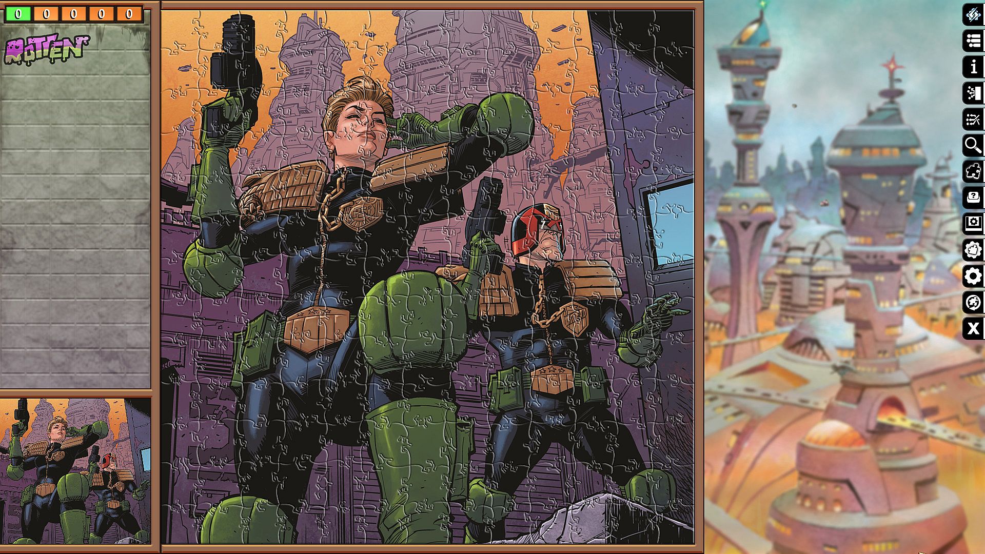 Pixel Puzzles Ultimate delivers jigsaw puzzling on PC with a Mega-City One theme. This pack brings 15 puzzles totaling 2683 pieces, all tied to an animated theme that works across puzzles. Players assemble images featuring Judge Dredd, Slaine, and other elements like The Judges, Jaegir, and Strontium Dog. The collection spans varied puzzle sizes, from 140 to 216 pieces each, covering Thrill-Power, Carnage, and Judge Death among others. Casual puzzlers enjoy the straightforward assembly process in this indie-style experience. Strategy fans piece together intricate designs at their own pace.