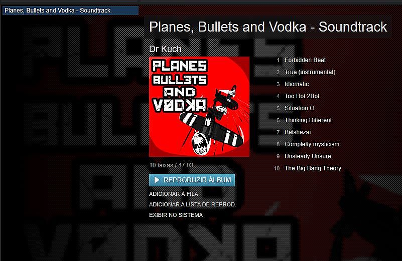 The Planes, Bullets and Vodka Soundtrack is a collection of 10 awesome tracks from 4 different artists, and you can get it completely free if you bought the game!