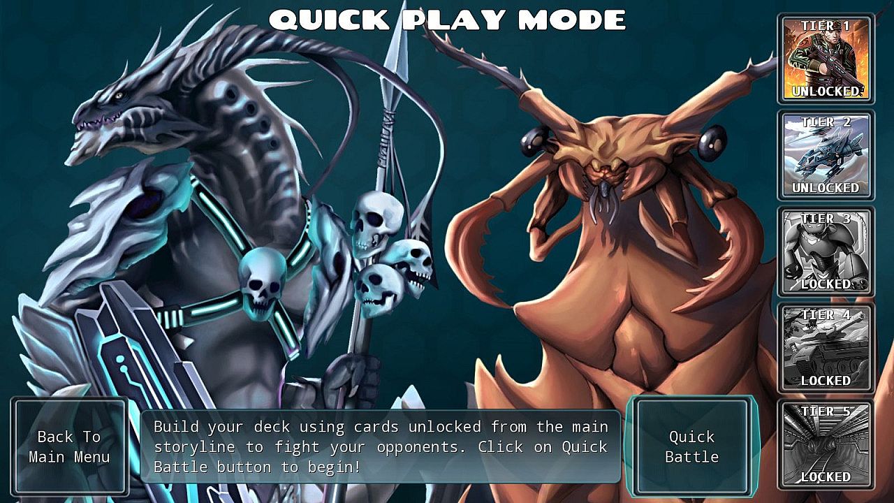Another addition it's the "Quick Play Mode", in which you can play single battles outside the main story campaign, using the cards you have unlocked so far. You can choose between 10 different group of enemies, and tweak the AI starting/recurring resources, to fine tune the game to your skills and tastes.