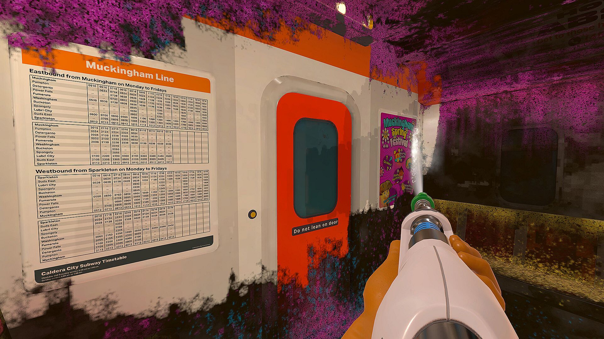 Next stop β the subway! Muckinghamβs residents have had their travel plans de-railed following a dirt-fuelled defacement. Get the subway system back on track by power washing the carriages to perfection β inside and out! This is one time youβll not want to skip the ads, as the posters inside the subway train provide a glimpse at what lies ahead on PowerWash Simulatorβs journeyβ¦