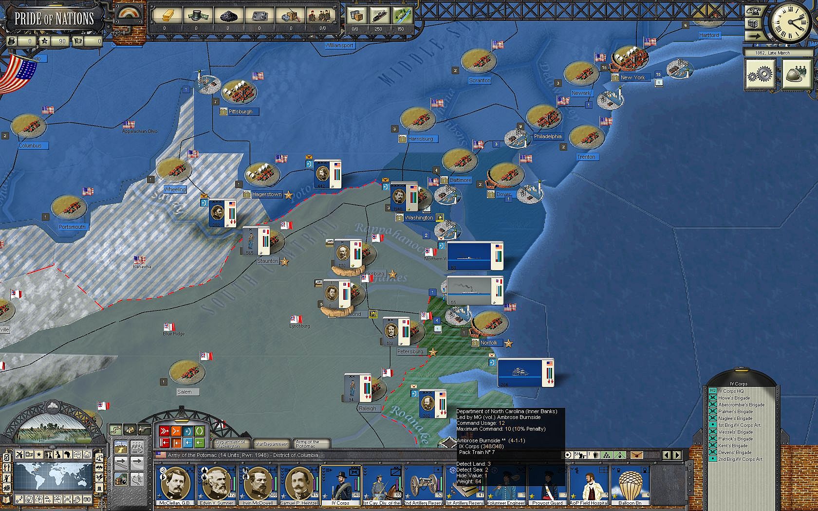 - Play as the Northern Union or the Confederate South to achieve victory in the conflict