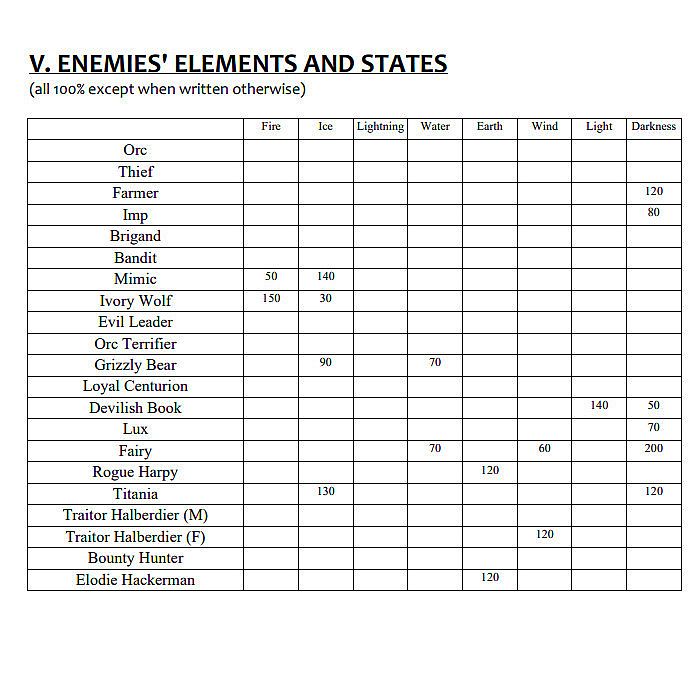 - Elements and States Resistances for Characters and Enemies