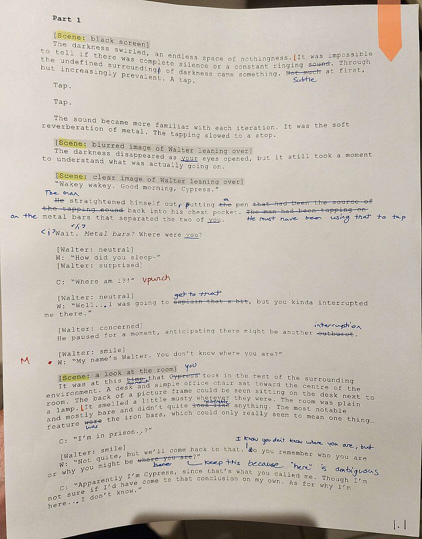 - The original script with hand-marked edits